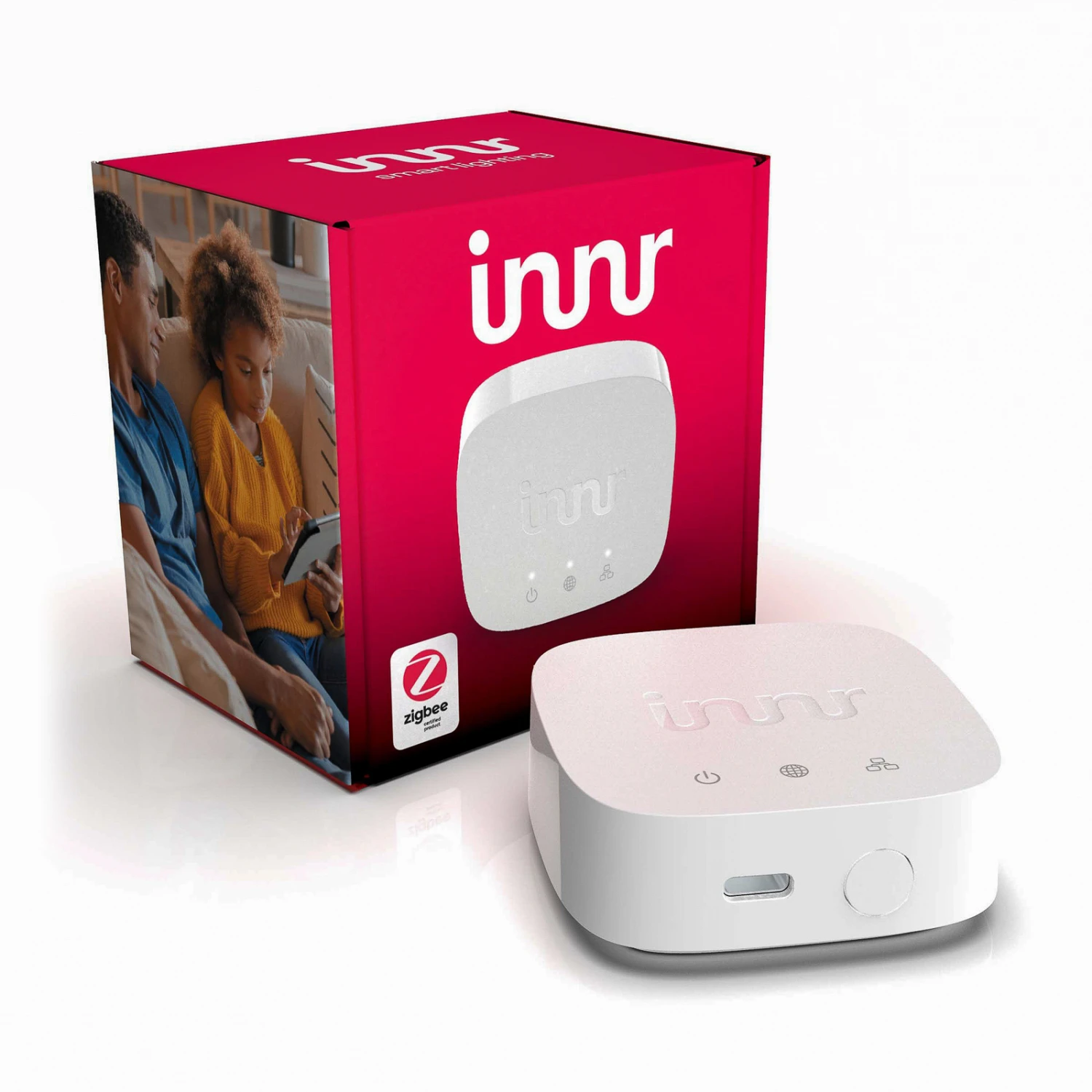 Die Innr-Bridge dient zur smarten Einbindung aller ZigBee-fähigen Innr-Komponenten und ist in diesem Angebot enthalten. Die Bridge wird ins das WLAN eingebunden (erfolgt via Funk – keine Verkabelung mit dem Router notwendig), sodass die Steuerung und Konfiguration der gekoppelten Komponenten kabellos und per App auf dem Tablet/Smartphone gelingt – bei Internetverbindung auch von unterwegs aus. Die Stromversorgung erfolgt über das beiliegende Kabel mit Stecker und Netzteil.