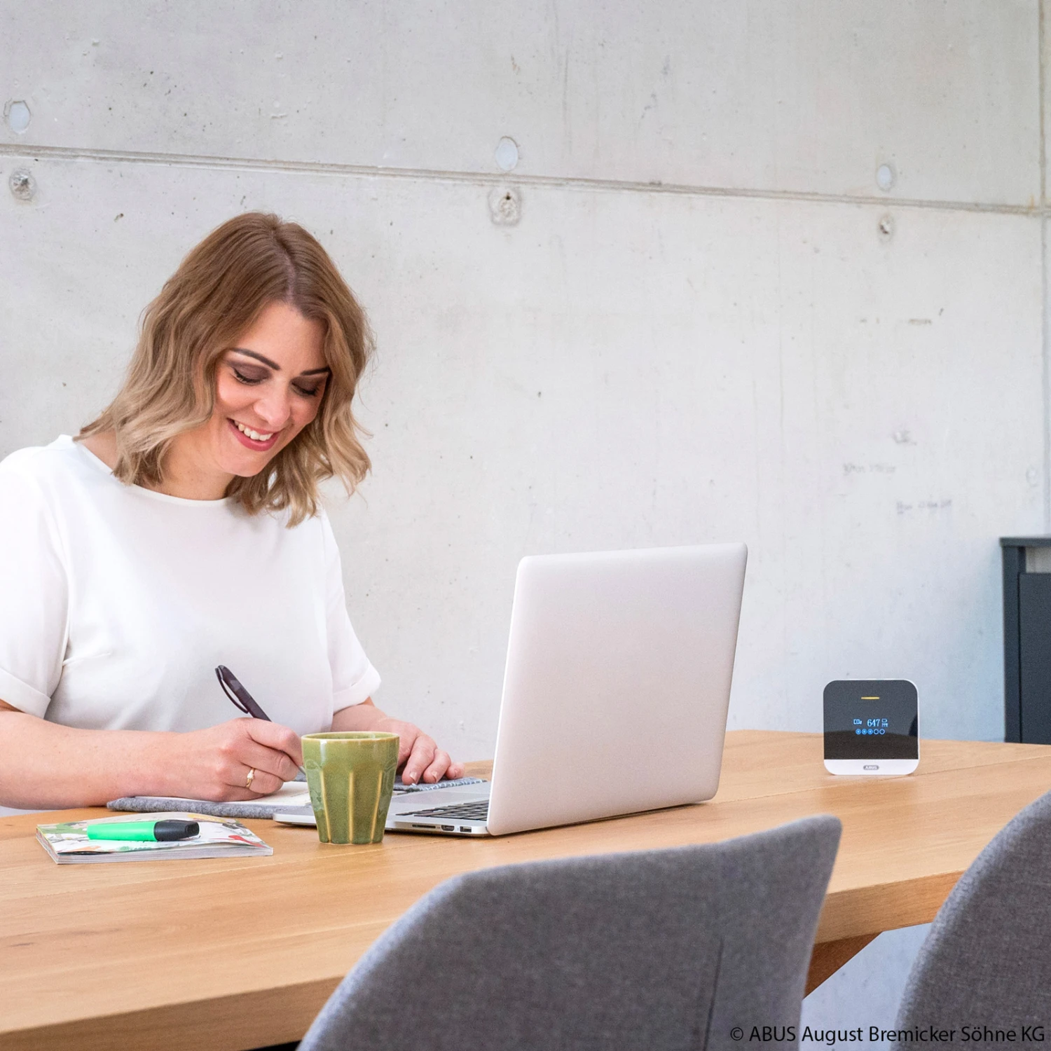 Schlechte Luft in Innenräumen aufgrund von zu hoher Kohlendioxid-Konzentration kann Kopfschmerzen, Übelkeit oder ein allgemeines Unwohlsein hervorrufen. Der CO2-Warnmelder misst zuverlässig das CO2, die Temperatur sowie die Luftfeuchtigkeit im Raum und zeigt die aktuelle Luftqualität an. Bei erhöhter CO2-Konzentration warnt Airsecure mit einer Anzeige auf dem Display und optional mit einem Alarmton.
