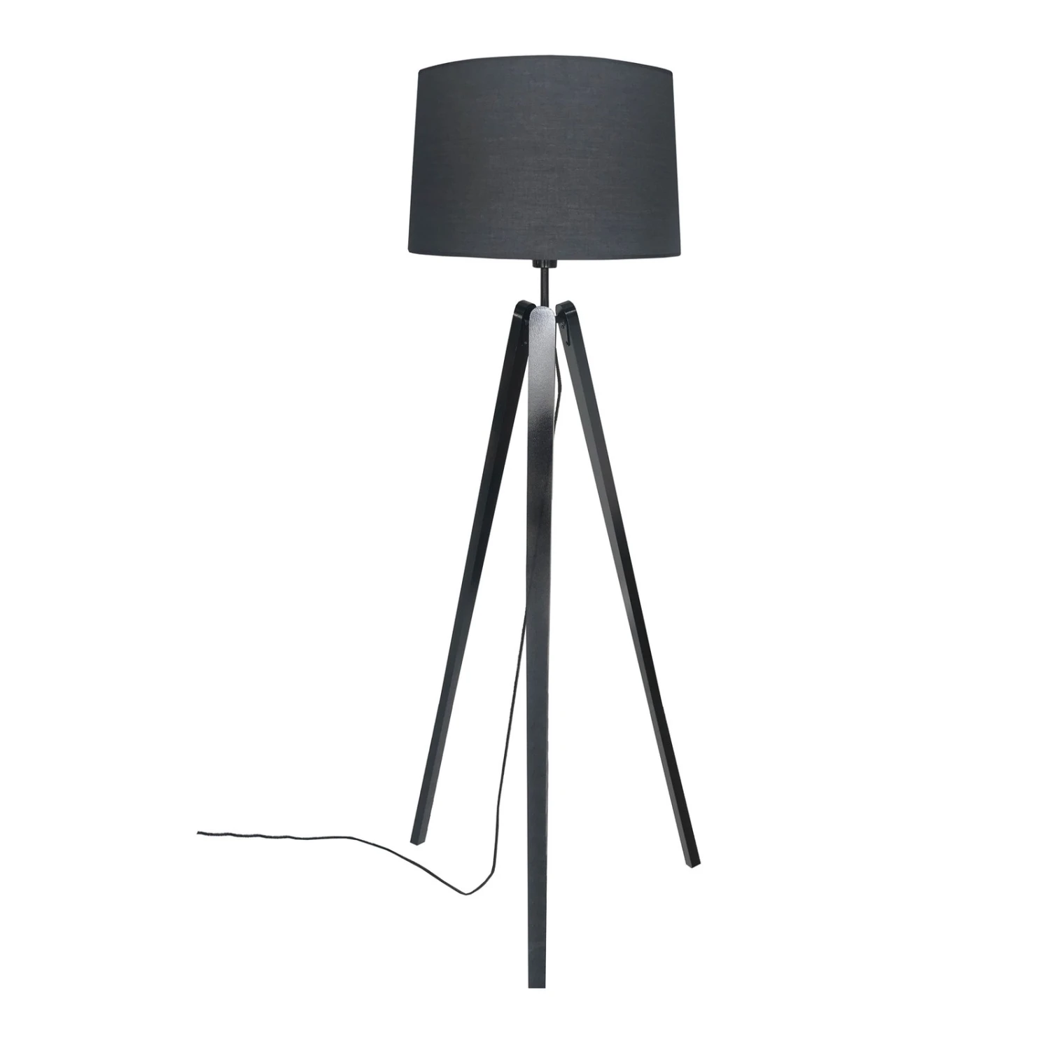 Elegant designte Stehleuchte Essence mit Textilschirm Essence präsentiert sich zum einen durch ihre Farbgebung, zum anderen durch ihre edle Gestaltung als Lichtspender, der auf dezente Weise der Einrichtung Eleganz verleiht. Das hohe Dreibein-Gestell ist aus Holz gearbeitet und schwarz lackiert, der ebenfalls schwarze Schirm besteht aus Baumwolle und strahlt das Licht der eingesetzten Lampe sowohl nach oben als auch nach unten ab. Das Leuchtmittel ist nicht im Lieferumfang enthalten, passende Lampen können unter Zubehör ausgewählt werden.