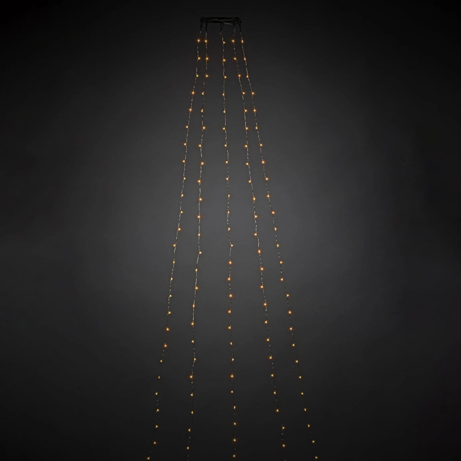 Bernsteinfarben leuchtende LED-Tropfen verteilen sich bei dem LED-Baummantel über insgesamt fünf Stränge und sorgen mit ihrem Licht für ein festliches Ambiente.