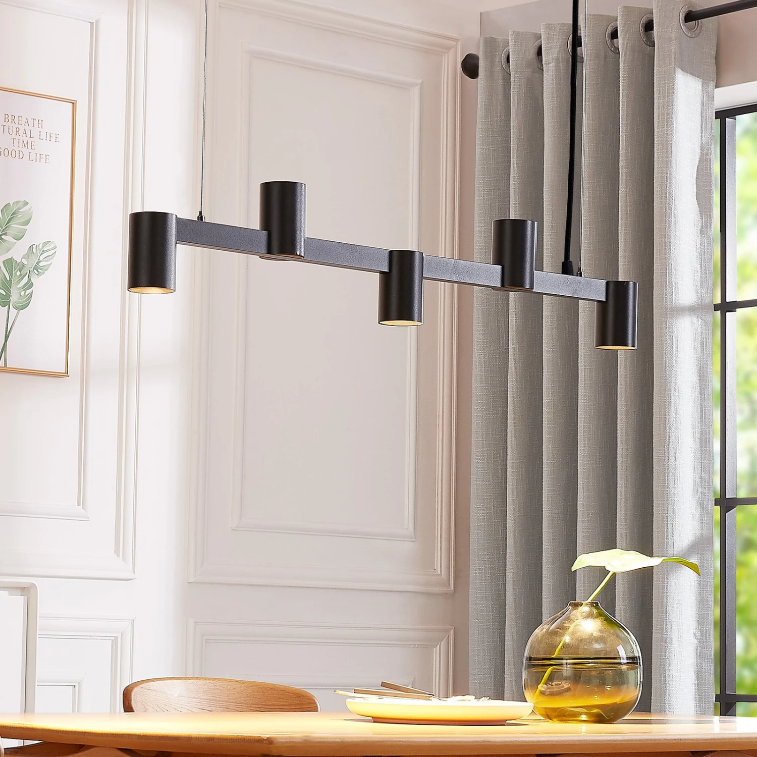 Auch Ihr Zuhause leuchtet diese Hängelampe hervorragend aus. Mit einem externen Dimmer und kompatiblen Leuchtmitteln können Sie die Helligkeit regulieren und sorgen so für Ihre persönliche Wohlfühlatmosphäre. Die Hängeleuchte steht in Qualität der Marke Arcchio für ein überzeugendes Wohnerlebnis und gut durchdachte Gestaltung. Die schwarze Pendellampe ist perfekt für Ihr Esszimmer, Ihr Wohnzimmer oder Ihre Küche geeignet. Sie wurde für die Verwendung von Leuchtmitteln mit GU10-Sockel optimiert und ist nicht nur ein hervorragender Lichtspender, sondern macht auch als dekoratives Einrichtungselement eine tolle Figur.