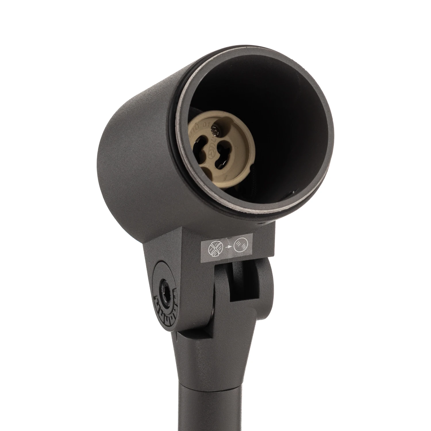 Der Außenstrahler Hemmani punktet mit seinem schlanken Look in Dunkelgrau, der sich hervorragend in moderne Umgebungen einfügen lässt, ohne sofort aufzufallen. Das Gestell sowie der zylinderförmige Spot wurden aus Aluminiumdruckguss hergestellt und besitzen die Schutzart IP65, dank der der Strahler langlebig im Außenbereich dienen kann. Das Besondere an Hemmani ist, dass er sich in seiner Höhe verstellen lässt (44,8 cm – 59,8 cm) und der Spot flexibel neigbar ist. Das macht es möglich, unterschiedliche Objekte und Bereiche im Garten stilvoll anstrahlen zu lassen, wie zum Beispiel den Gartenweg, eine Mauer oder auch Sträucher.