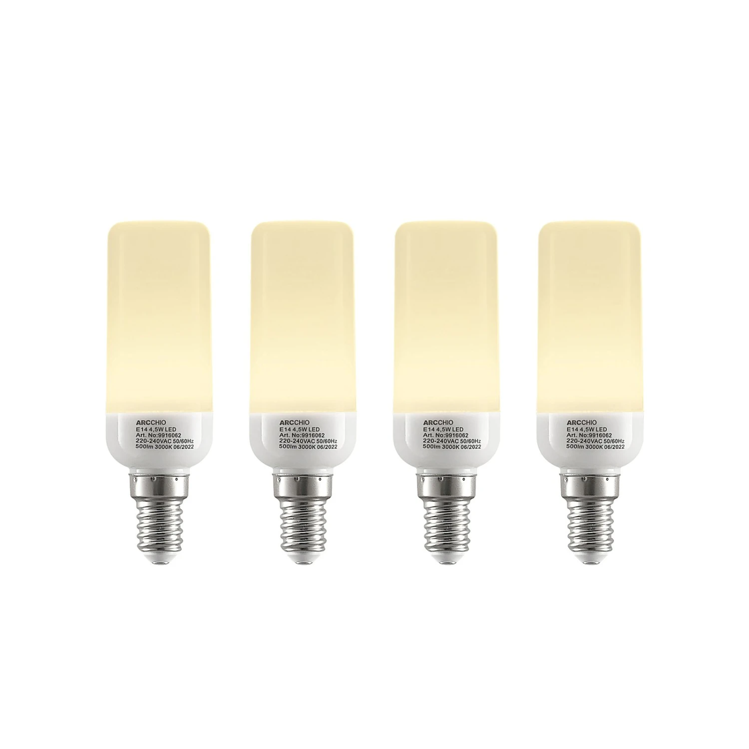 Arcchio E14 4,5W LED-Lampe in Röhrenform, warmweiß, im 4er-Set