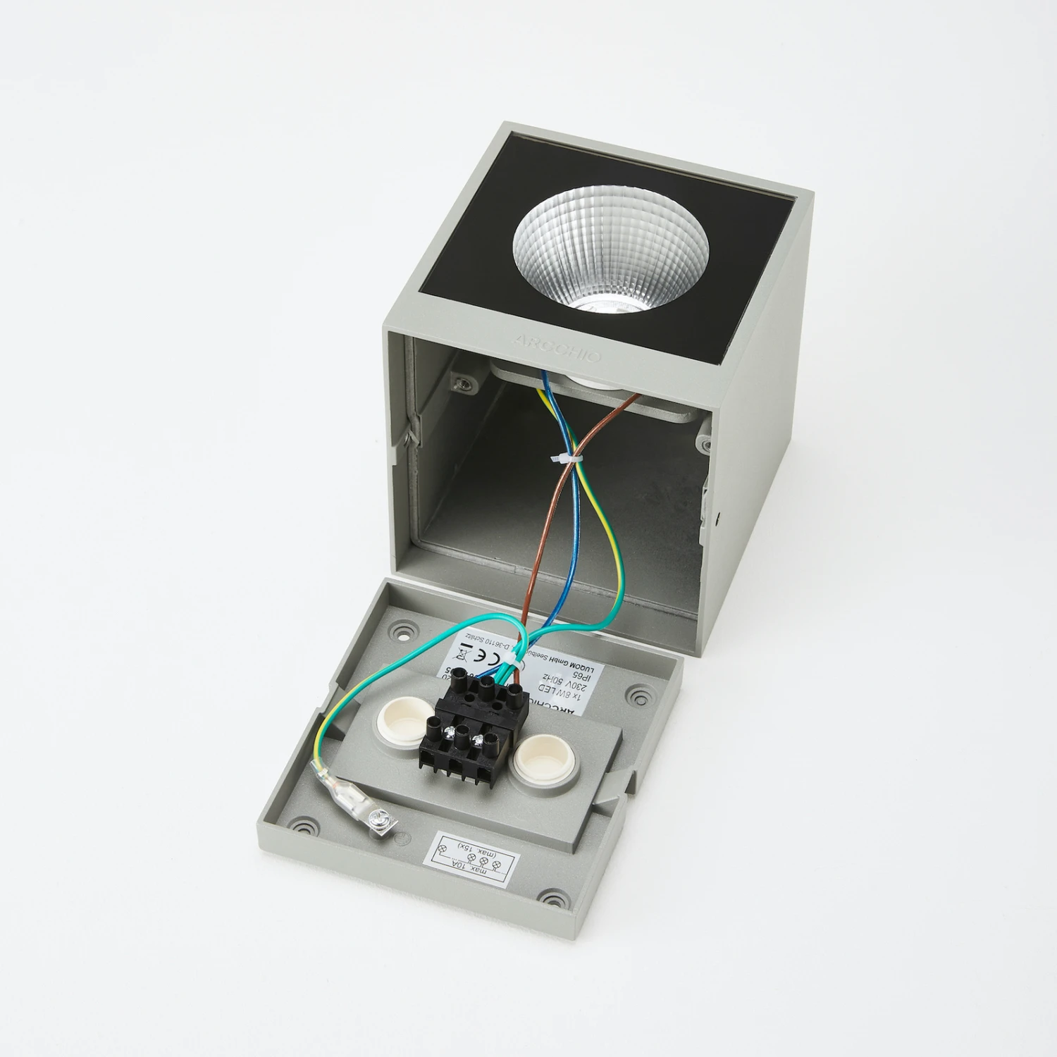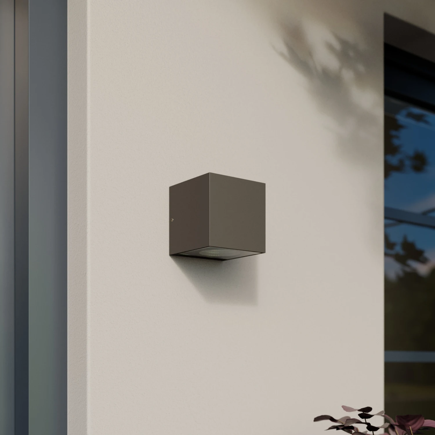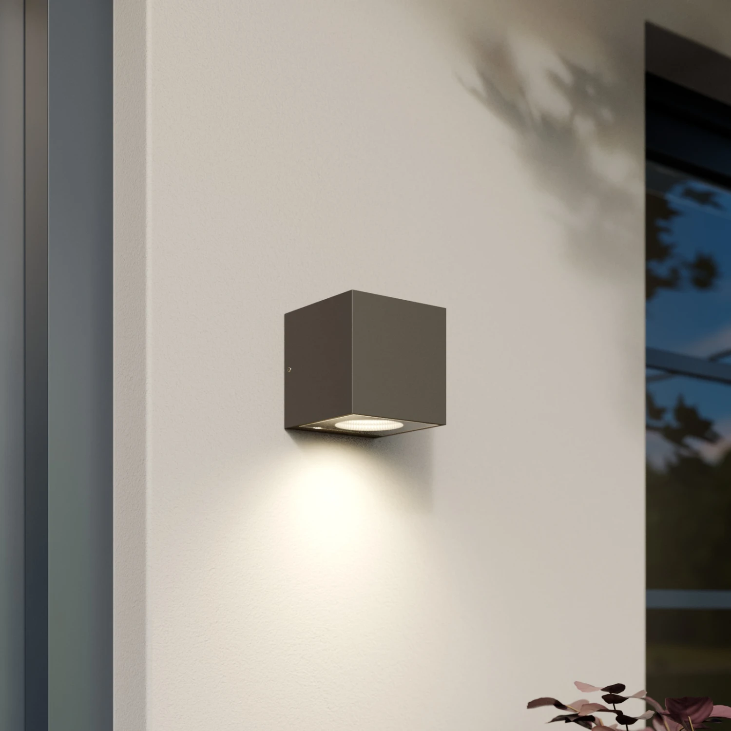 Silberne LED-Außenwandleuchte Tassnim in Würfeloptik