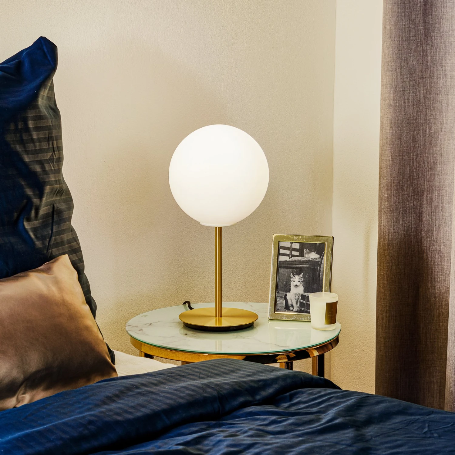 Dimmbare LED-Tischleuchte TR Bulb mit einem Leuchtenschirm aus Opalglas