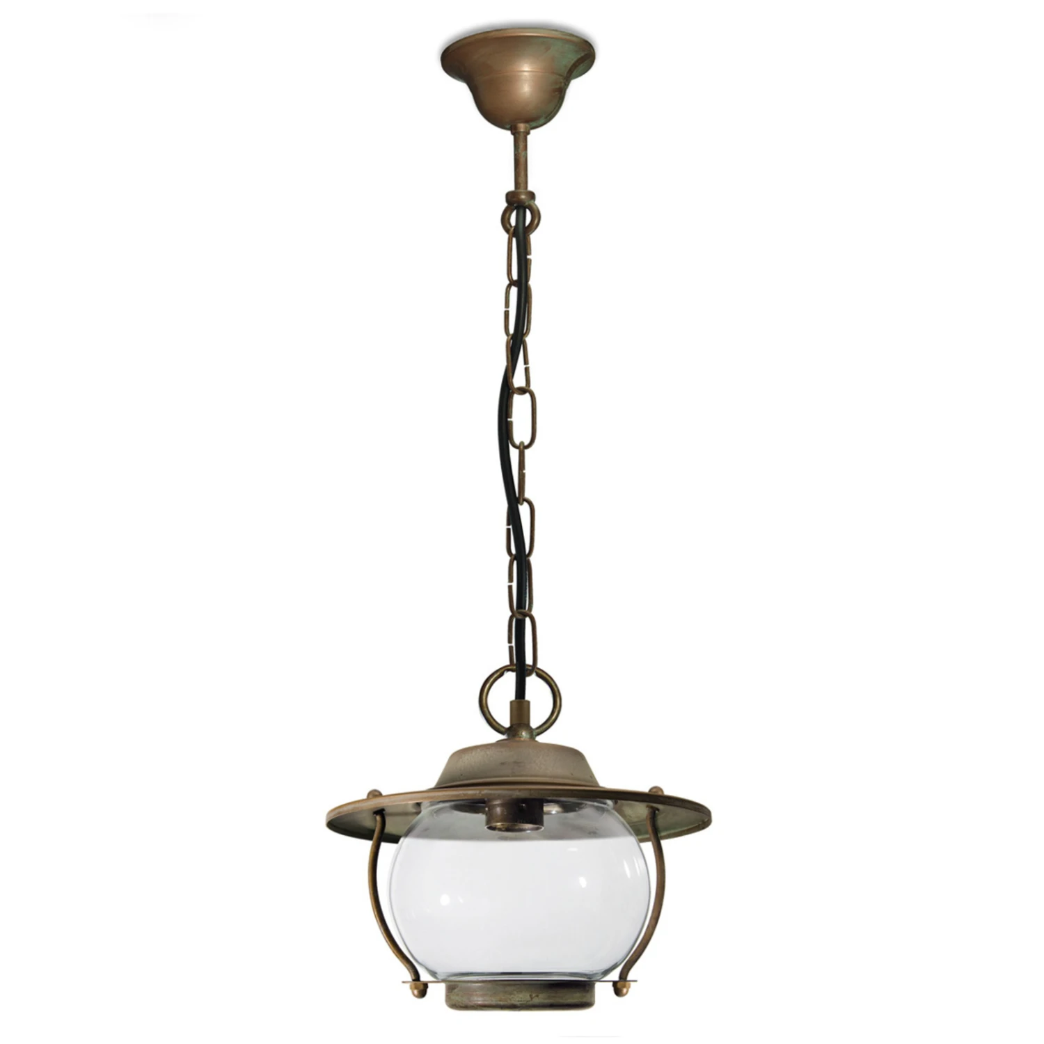 Ländlich-rustikal präsentiert sich die Außen-Hängeleuchte Adessora. Die geschmackvolle Leuchte wird mit einer Kette in antiker Messing-Optik aufgehängt, welche gleichzeitig auch als Korrosionsschutz dient. Das runde Glas wird von einem Gestell gehalten, welches ebenfalls in antikem Messing-Design gestaltet ist. Adessora überzeugt nicht nur durch ihr stilvolles Äußeres, sie trägt auch dank des hellen Lichts zu Sicherheit und Orientierung bei.
