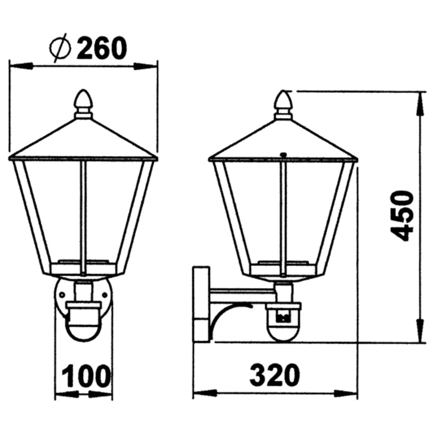 Hochwertig verarbeitete Außenwandleuchte 671 made in Germany – mit Bewegungsmelder ausgestattet