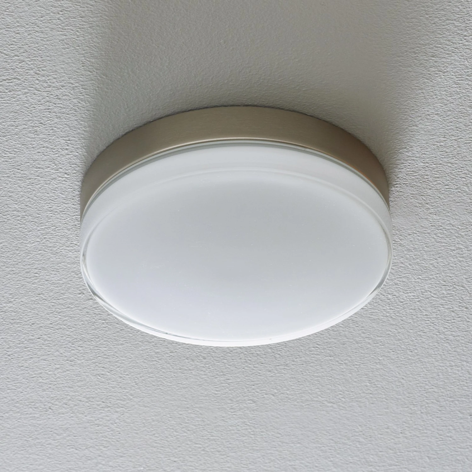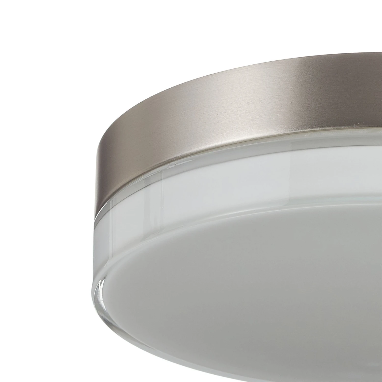 Diese kompakte Deckenleuchte besteht aus einem Aluminium-Gehäuse und einer Abdeckung aus mundgeblasenem Kristallglas. Dank der geringen Bauhöhe ist die flache Badezimmerleuchte hervorragend für Räume mit niedrigen Decken geeignet und kann auch als Wandleuchte gute Dienste leisten. Dank des Spritzwasserschutzes ist die Deckenleuchte auch bedenkenlos in Feuchträumen wie Bädern und Spa-Bereichen einzusetzen. Hochwertige, fest verbaute LEDs sorgen für eine helle, warmweiße Ausleuchtung, deren Intensität mittels DALI-Anbindung geregelt werden kann.