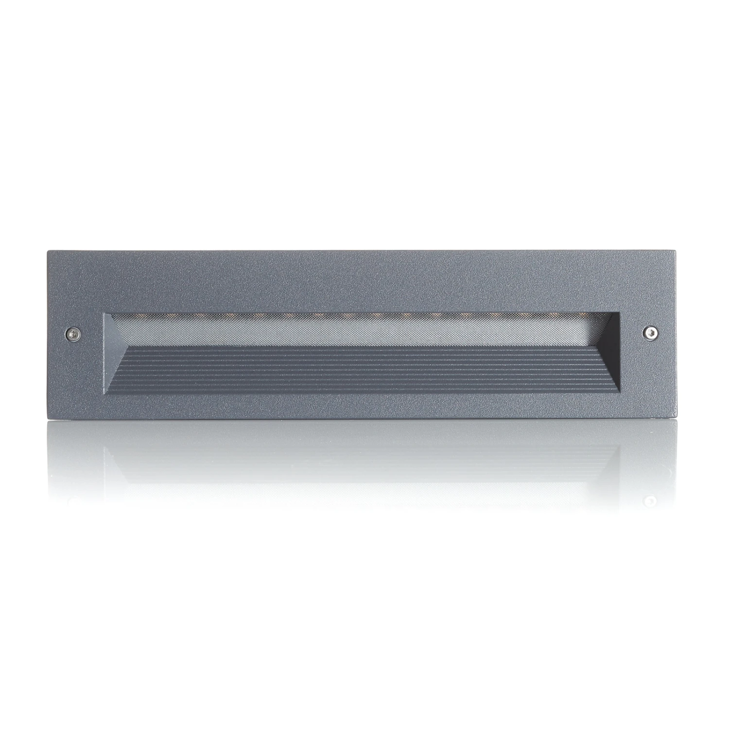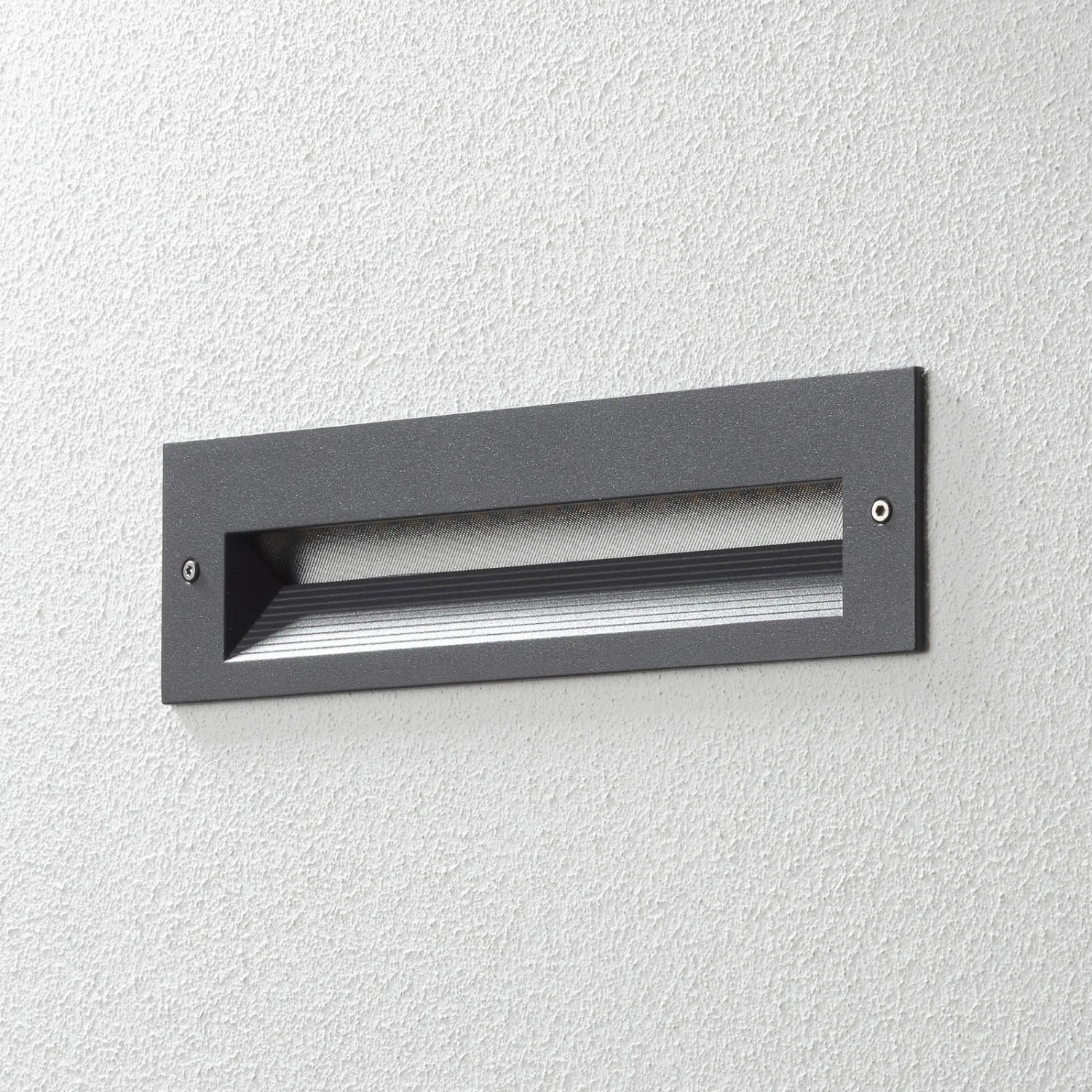 Diese LED-Wandeinbauleuchte ist aus Aluminium und Edelstahl gefertigt und mit unauffälliger Farbe versehen. Sie wird in die Wand eingebaut und geht bündig in die Fassade über. Über die Breite der Leuchte erstreckt sich eine Einkerbung, die wie ein Dreieck nach innen eingearbeitet ist und etwas versteckt die warmweiß strahlenden LEDs beherbergt. Die Form sorgt für eine asymmetrische Lichtverteilung, wodurch der Lichtstrahl genau dorthin gelenkt wird, wo man ihn benötigt. Außerdem wird dadurch Blendung vermieden, was gerade in der Dunkelheit sehr wichtig ist. Die Einbauleuchte kann im Außenbereich an Treppen, Laufwegen, Hausfassaden oder auch Eingängen zum Einsatz kommen und ist dank IP65 dafür bestens gerüstet. Sie eignet sich zusätzlich zur Durchgangsverdrahtung und sorgt vor allem in Kombination mit weiteren Exemplaren für eine sichere Beleuchtung bei Nacht und eine zuverlässige Orientierung.