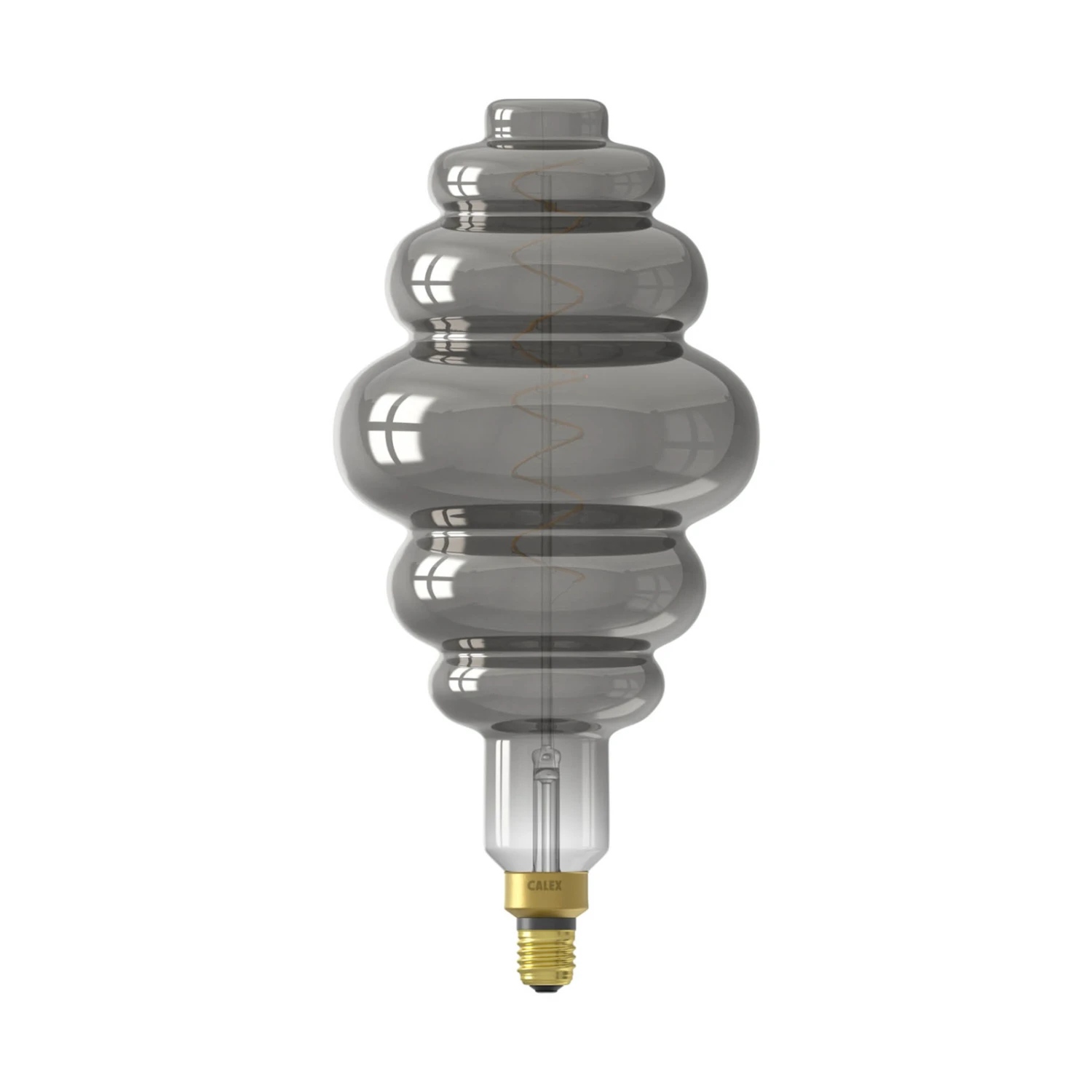 Selbst im ausgeschalteten Zustand ist dieses LED-Leuchtmittel mit der leicht spiegelnden, titanfarbenen Beschichtung und der spiralförmigen LED-Elemente im Innern ein Blickfang.