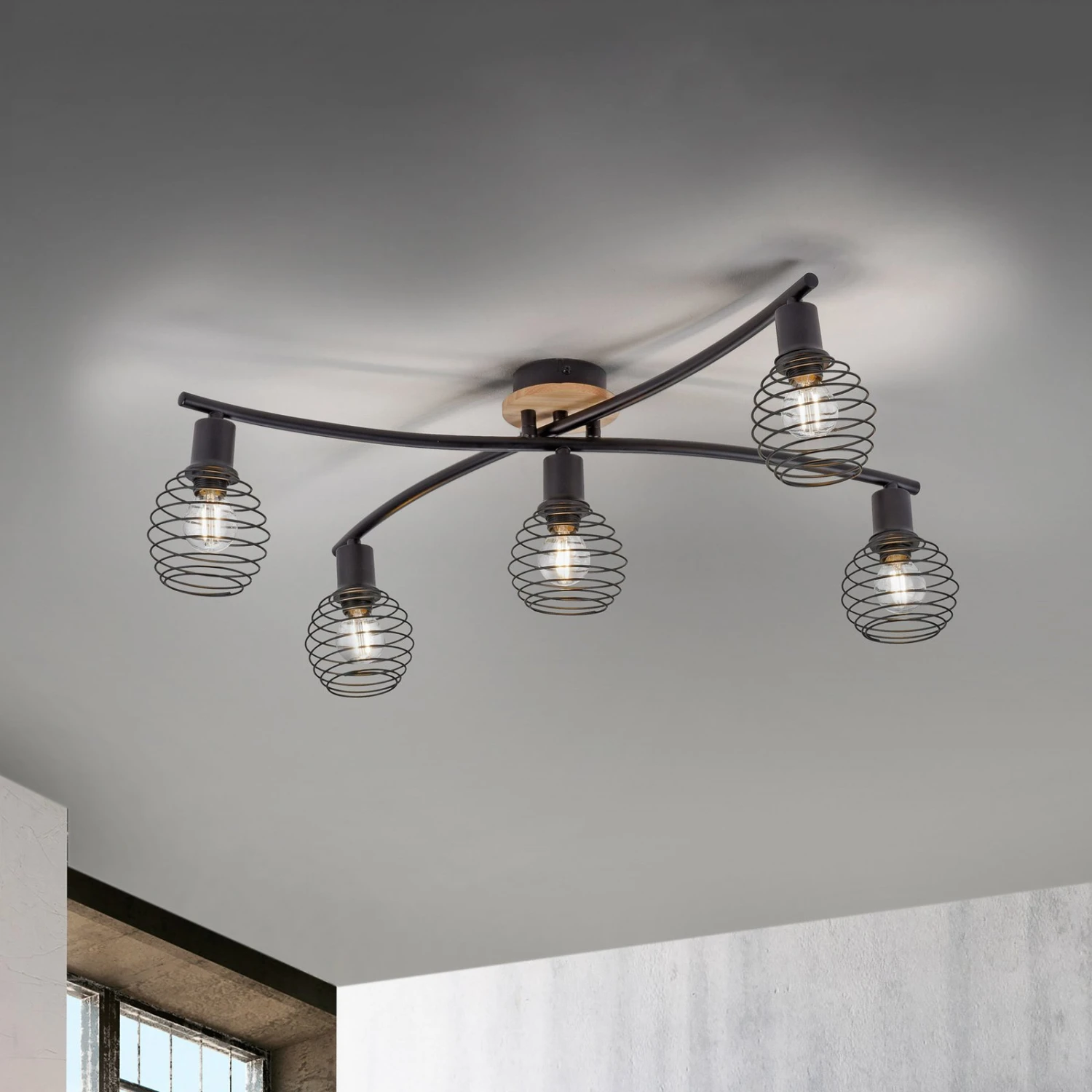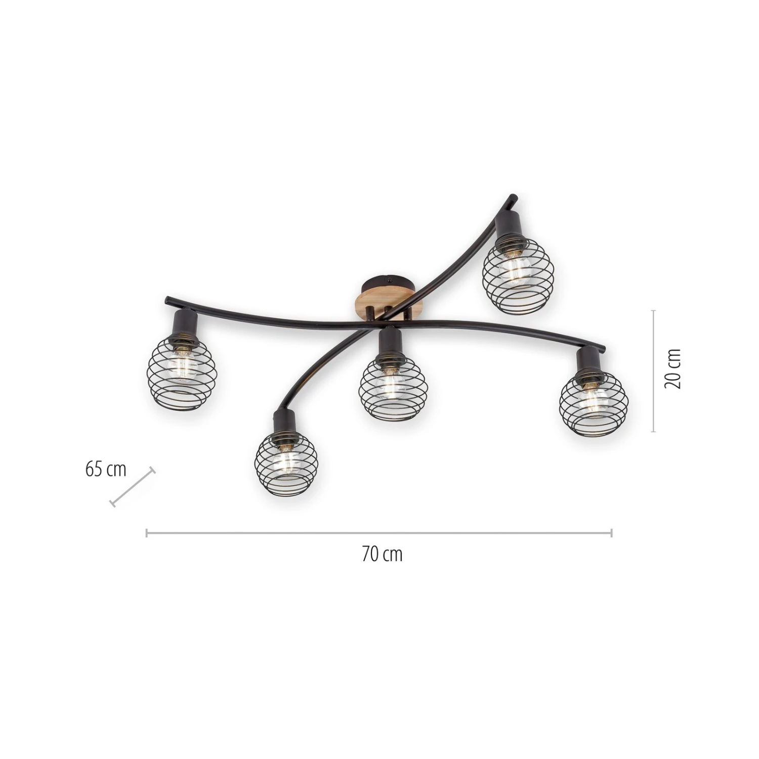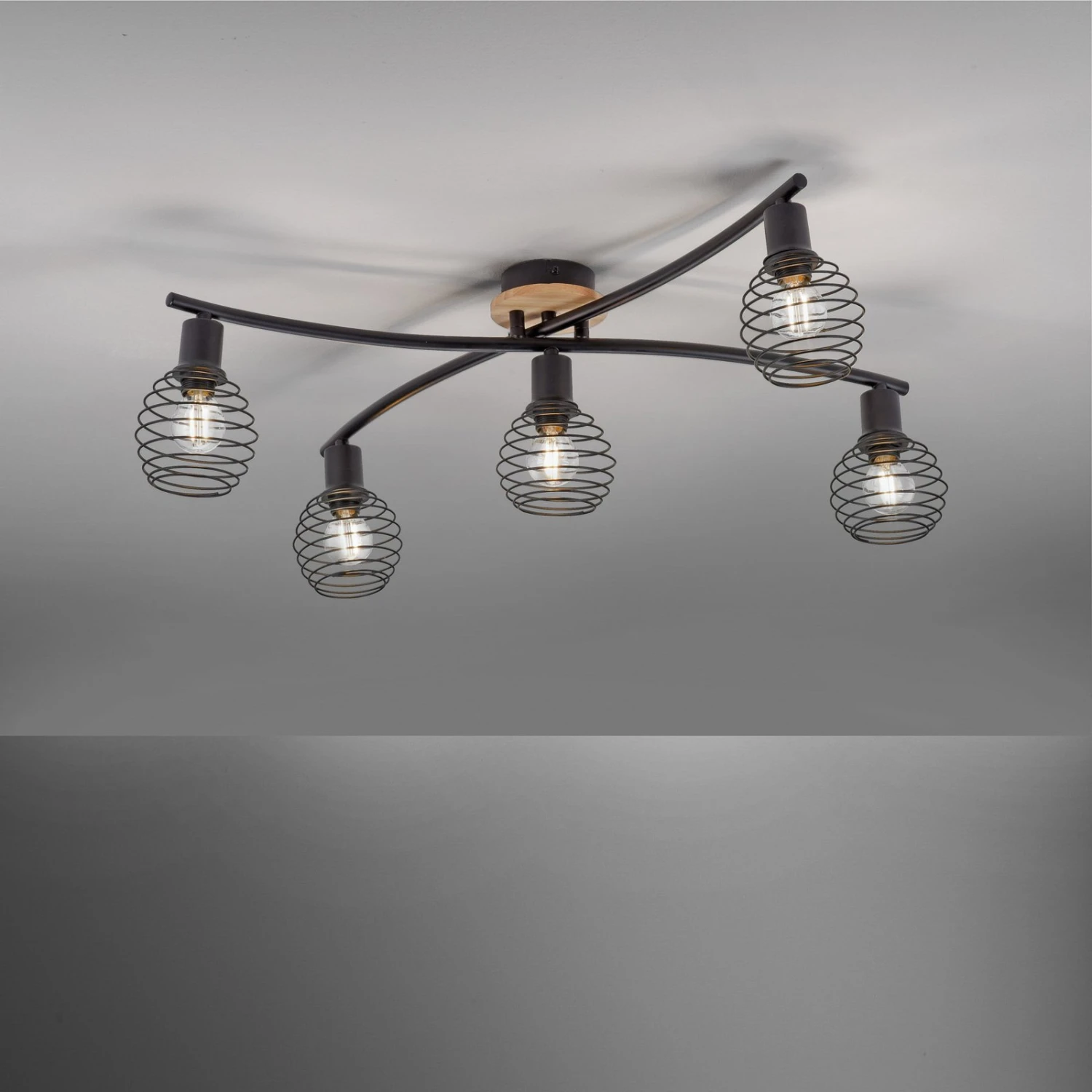 Deckenleuchte Eugen, fünfflammig mit Holzdekor