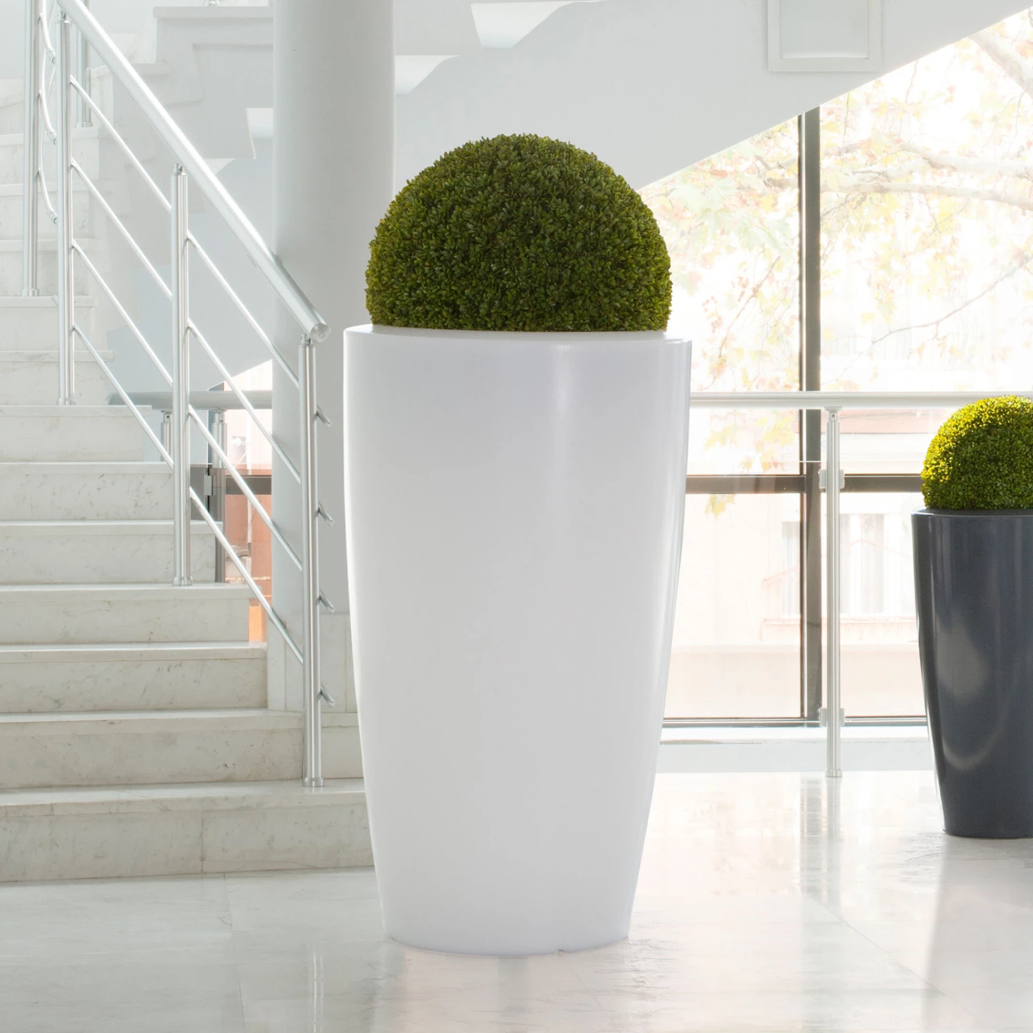 Bei der LED-Dekoleuchte Rovio III bleiben keine Wünsche offen. Sie fungiert nicht nur als Lichtobjekt, sondern zugleich als Pflanzentrog sowie als Dekoaccessoire für den Innen- und Außenbereich. Der in einem speziellen Rotationsschmelzgussverfahren in extra dafür angefertigten Formen gegossene Korpus der Leuchte besticht mit runder Silhouette und hält nicht nur allen Witterungsverhältnissen und starker Sonneneinstrahlung stand, sondern ist auch schlagsicher gearbeitet, was für eine lange Haltbarkeit spricht. Die passenden RGB- und CCT-Leuchtmittel sowie die dazugehörige Fernbedienung sind im Lieferumfang enthalten. Die Leuchtmittel können nach Ablauf der Lebenszeit ausgetauscht werden. Die Einstellungen lassen sich über die enthaltene Fernbedienung stufenlos vornehmen. Rovio III ist auch stufenlos dimmbar.