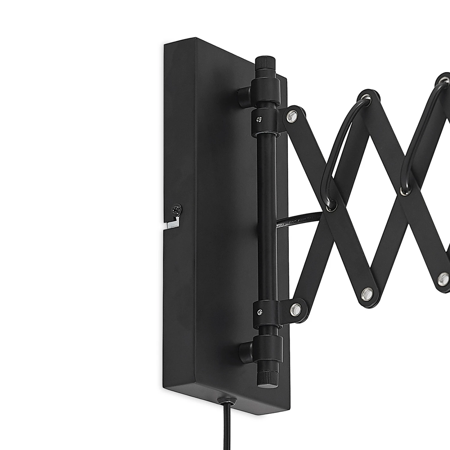 Diese Leuchte ist mit einem Scherenarm ausgestattet, sodass man sie weit in den Raum ragen lassen kann und dabei nach rechts oder nach links schwenken kann. Auf diese Weise kann man den optimalen Abstrahlwinkel erzielen, was sich vor allem beim Lesen als äußerst praktisch erweist. Diese ausziehbare Wandleuchte kann man sehr gut in Reichweite eines Bettes im Schlafzimmer oder einer Couch im Wohnzimmer nutzen. Die lange Zuleitung mit Stecker erlaubt eine Montage genau dort, wo die Leuchte am meisten gebraucht wird.