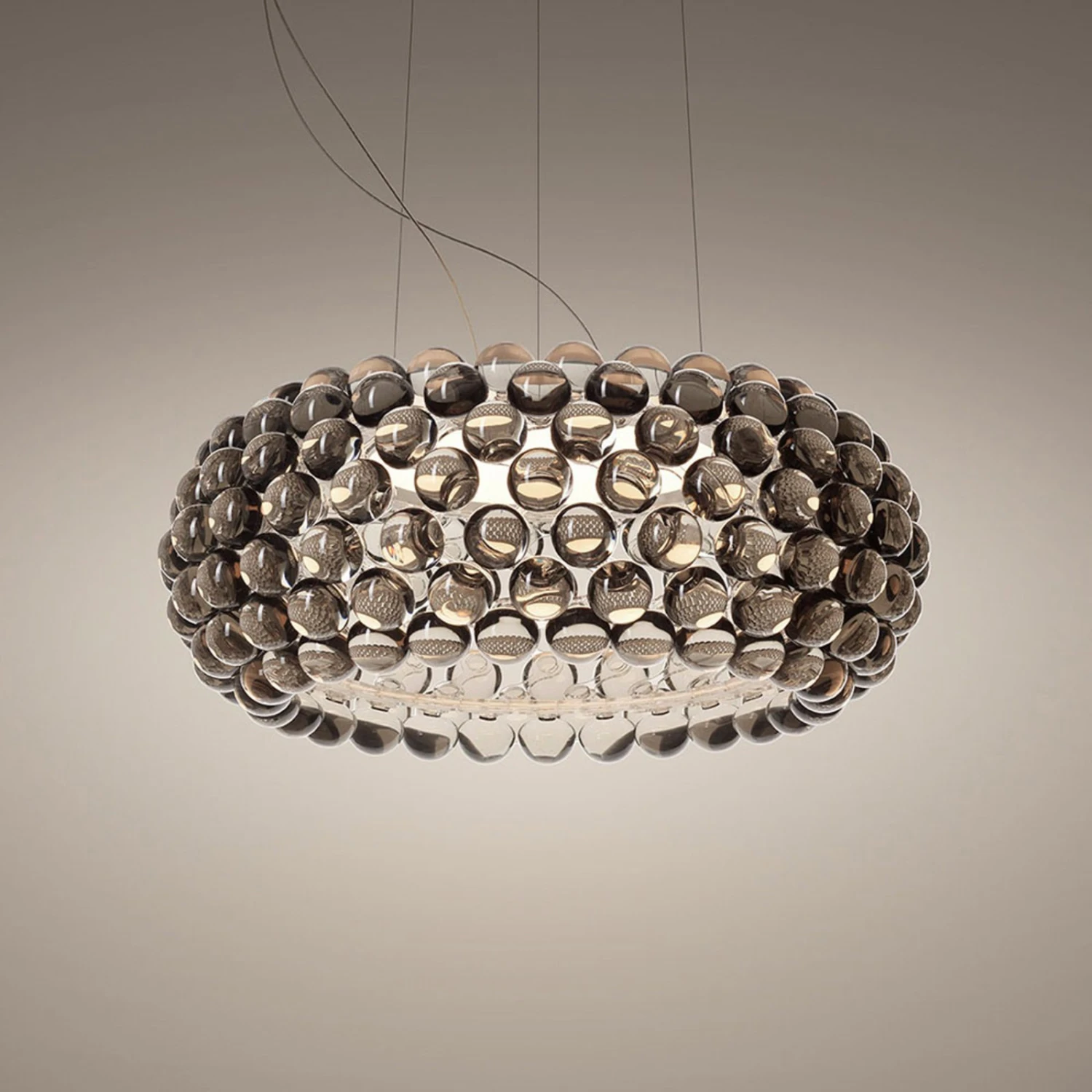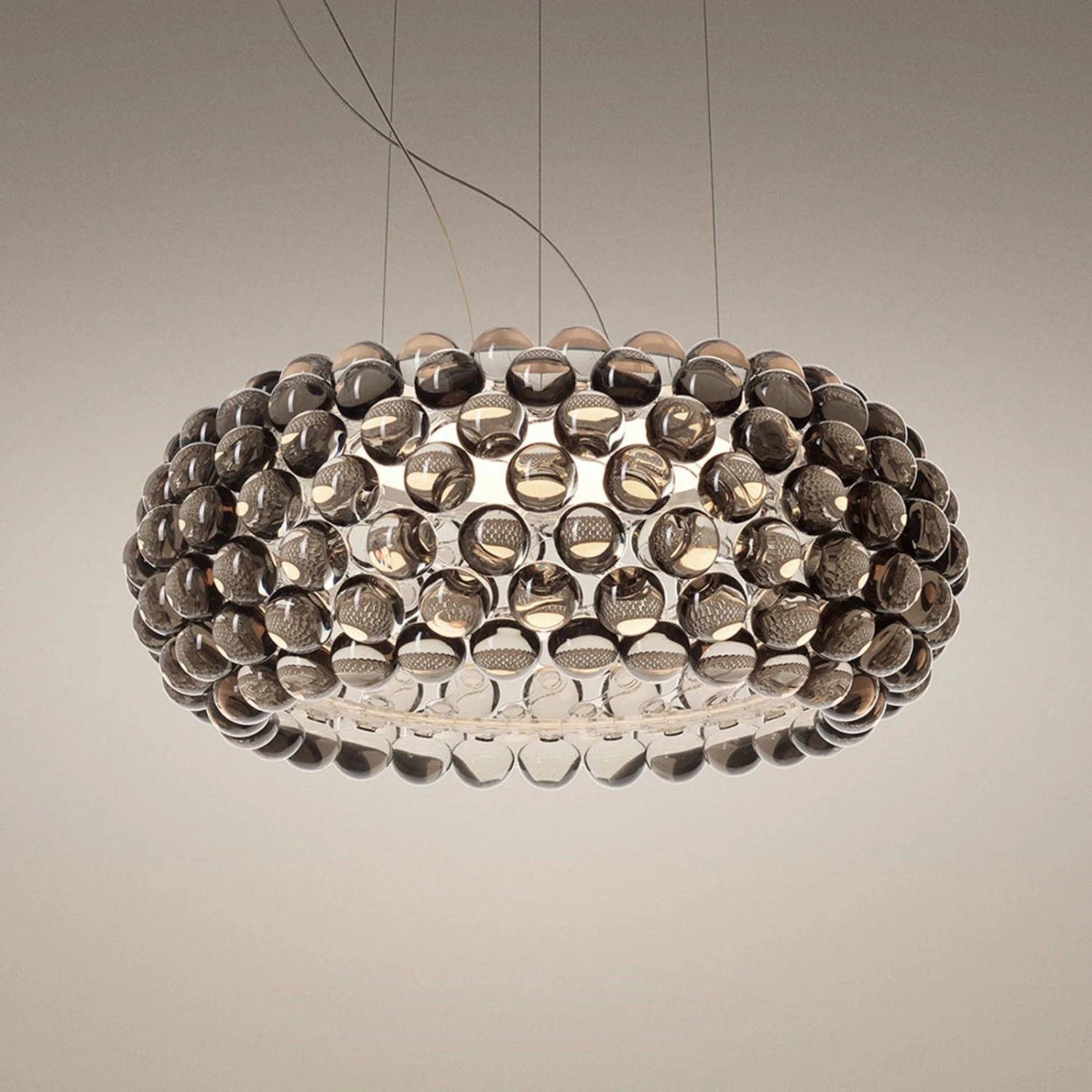 Das Design der beeindruckenden Leuchte stammt von Patricia Urquiola und Eliana Gerotto. Sie entwarfen für Foscarini mit Caboche eine Leuchtenserie, die sich seit 2005 zu einem Design-Klassiker entwickelt hat. Die Plus-Variante ist eine aktualisierte Version mit integrierten LEDs und angenehmem Licht sowie einer speziellen Befestigung der Perlen mittels transparenter Kunststoff-Bänder, die eine ideale Entfaltung der Optik und Lichtwirkung gewährleisten.