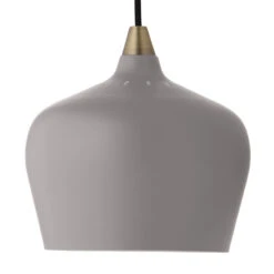 Diese Hängeleuchte aus dem Hause Frandsen ist ideal für die Ausleuchtung von Esstischen und Küchentheken geeignet. Der Schirm ist aus Metall gearbeitet und sorgt für eine abwärts gerichtete Lichtabgabe mit großflächiger Streuung. Gleichzeitig wird über einen kleinen Ring aus Löchern an der Oberseite diffuses Licht nach oben gestrahlt, was ein gemütliches Ambiente bewirkt. Cohen ist mit einem Baldachin in Leuchtenfarbe sowie textilummantelter Kabelabhängung ausgestattet.