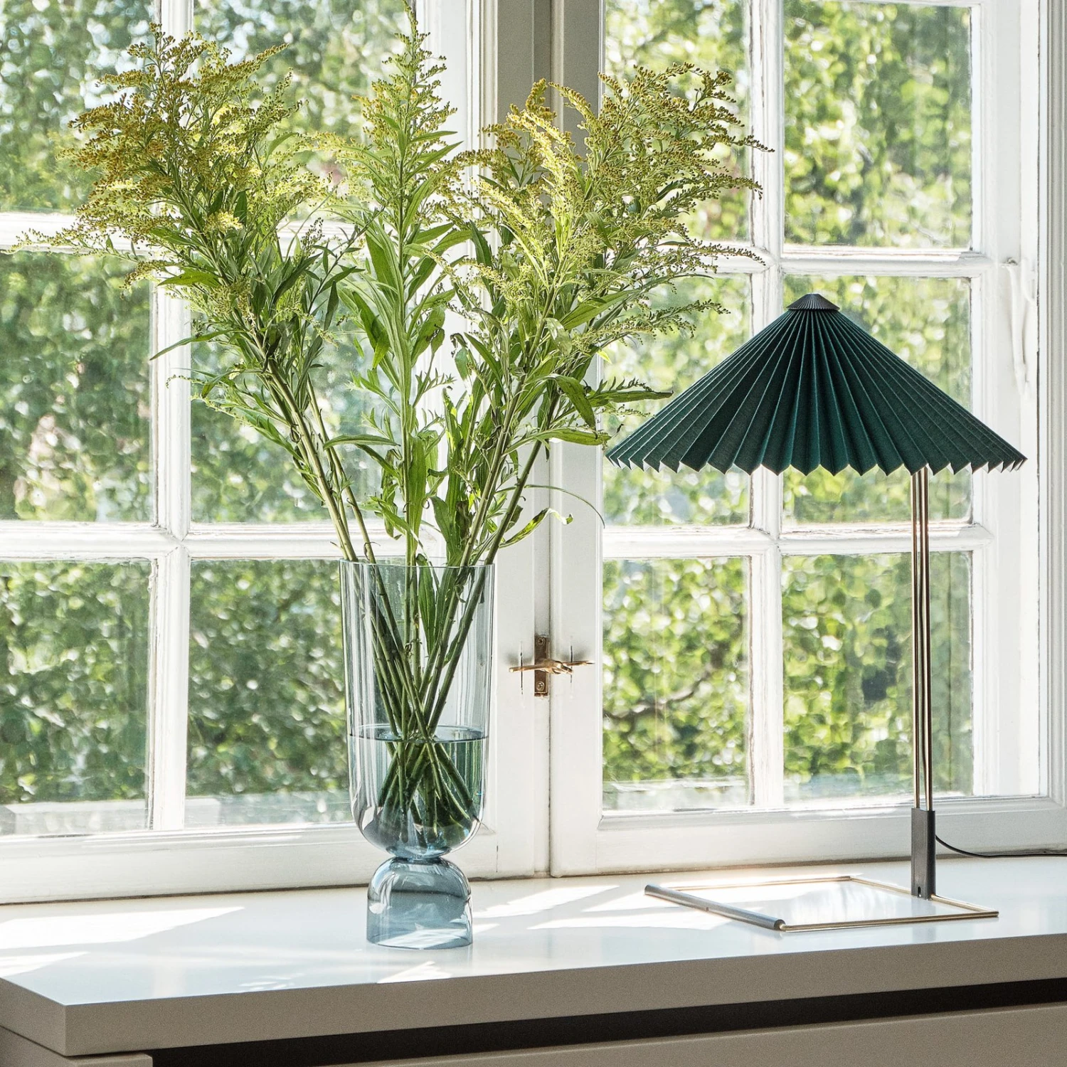 LED-Tischleuchte Matin 300 mit Plisseeschirm und Messinggestell