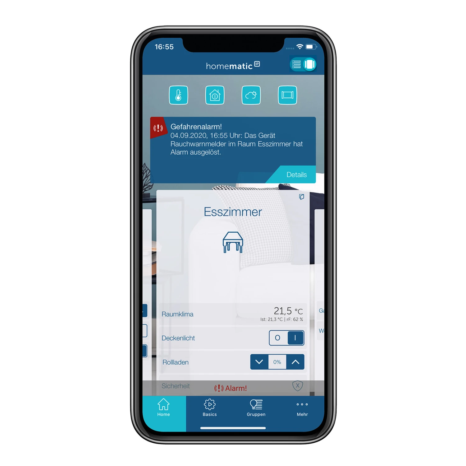 Für die Sicherheit in den eigenen vier Wänden bietet der smarte und intelligente Rauchwarnmelder aus der Homematic IP Produktserie guten Schutz und viele Vorteile. Dieser Rauchmelder ist für den Betrieb mit einer Access Point oder CCU3 Zentrale (beides Steuerzentralen eines Homematic-IP-Smart-Home-Systems) geeignet und ausgelegt.