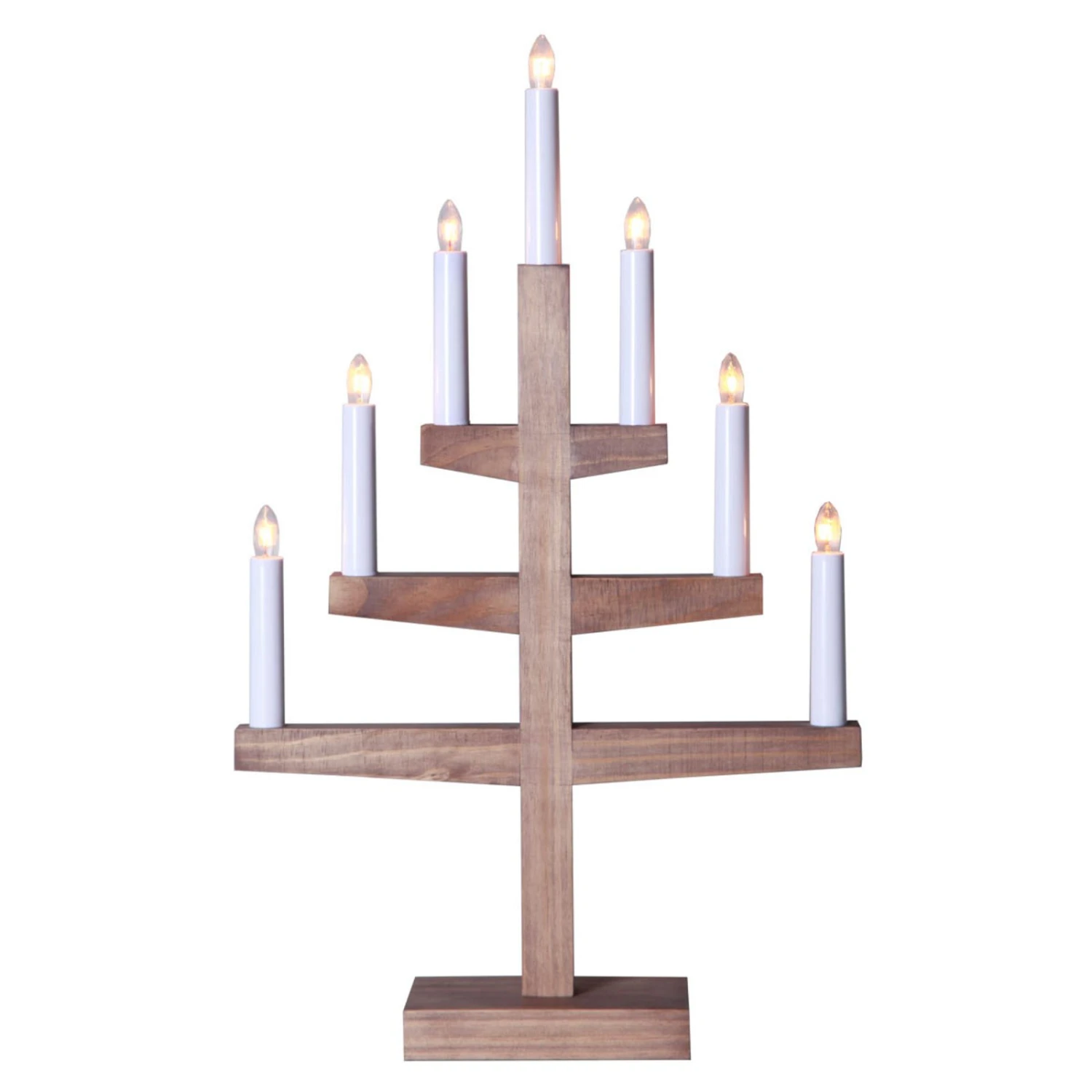 Für Liebhaber eines von der Natur inspirierten Wohnstils eignet sich dieser siebenflammige Kerzenleuchter Trapp als weihnachtliches Dekoaccessoire: Er ist aus Eichenholz gearbeitet, besticht mit zeitloser, gerader Form und sorgt im Handumdrehen für festliche Akzente auf dem Tisch. Auch als Fensterdekoration in der Weihnachtszeit sehr beliebt. Die Kerzenleuchten sind jeweils mit einer 3 Watt starken E10-Lampe bestückt, die stimmungsvolles Licht für ein gemütliches Ambiente abstrahlt.