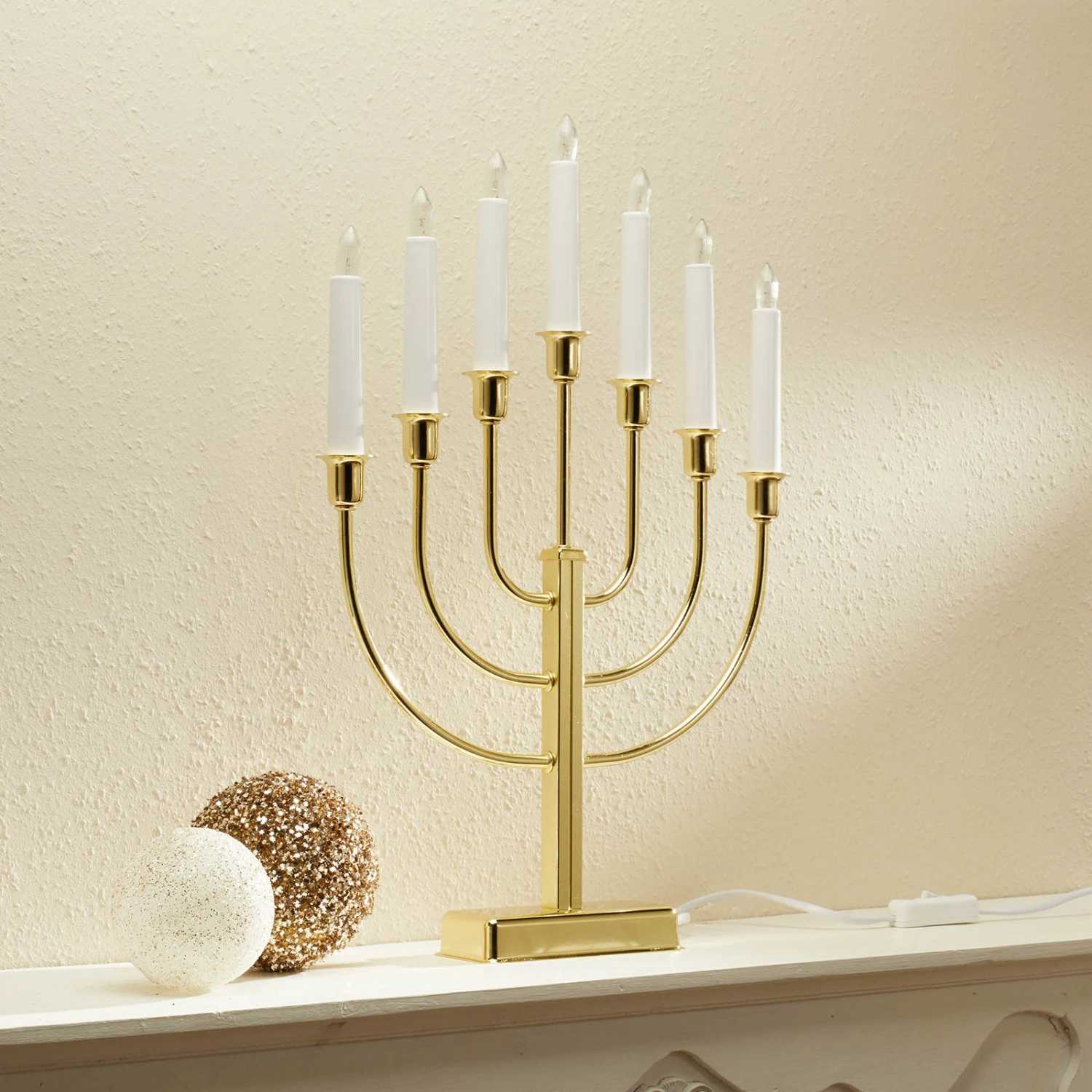 Mit diesem Kerzenleuchter lässt sich ein elegantes Ambiente festlich dekorieren. So wird aus dem schönsten Fest des Jahres ein richtiger Glanzpunkt. Mit sieben Kerzenleuchten sorgt Kristina für eine stimmungsvolle Illumination, die Akzente setzt. Mit Schalter ausgestattet. Leuchtmittel: 7 x 3 W E10.
