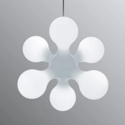 Der große Diffuser der Designer-Leuchte Atomium ist nicht nur optisch ein wahres Highlight, sondern kann auch aus technischer Sicht überzeugen: Hergestellt wird er aus speziellem Polyethylen, das im Rotomoulding-Verfahren bearbeitet wurde und dadurch eine besonders hohe Qualität besitzt. Als Stütze fungiert eine Federstruktur, die im inneren des Leuchtenschirms angebracht ist und aus festem Stahl besteht. Insgesamt sechs Leuchtmittel werden so gesichert und können für ein starkes und warmes Lichtbild sorgen. Atomium besitzt eine höchst wirkungsvolle Leuchtkraft und kann dadurch eine wohnliche Atmosphäre schaffen, die vor allem in Wohnräumen, aber auch im Schlaf- oder Kinderzimmer angewendet werden kann. Sogar das Kabel wurde zusätzlich gesichert, denn dort wurde ein Stahldraht eingesetzt, der dezent auf der Innenseite liegt. Der Hersteller „Kundalini“ setzt bei der Herstellung seiner aktuellen Produkte nicht nur auf aufwändige Verfahren, sondern nutzt darüber hinaus nur Materialien, die über eine hohe Qualität verfügen. Kombiniert werden diese mit den neuesten Techniken aus der Welt der Leuchten und einem stets ansprechenden Design, das in vielen Fällen klassische Linien mit neumodischen Ideen kombiniert und somit in vielen Einrichtungsstilen einsetzbar ist.