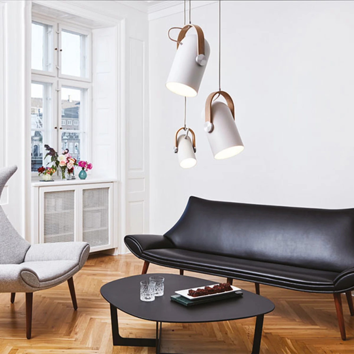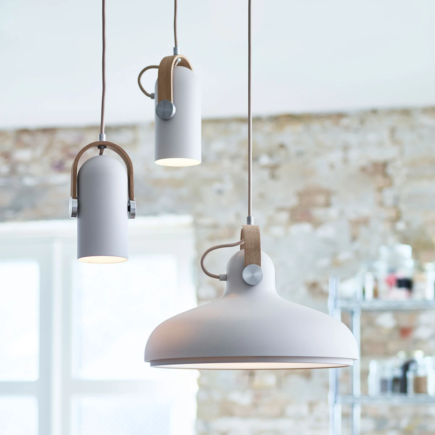 Die Pendellampe Carronade ist ein Entwurf des dänischen Möbel- und Industriedesigners Markus Johansson. Wie der Name bereits verrät, stand eine alte Kanone, wie sie im 18. Jahrhundert auf Schiffen eingesetzt wurde, Pate zum Design des Leuchtenkörpers dieser Hängeleuchte. Die Kombination aus matt-sandfarbenem Stahl als Leuchtenschirm, sandgewaschenem Eichenholz als Haltebügel und Feststellschrauben aus Messing verleiht der Leuchte nicht nur ihren unverwechselbaren nordischen Charme, sondern auch eine große Portion Flexibilität, denn der Schirm kann in dem Holzbügel in beliebigem Winkel arretiert werden.