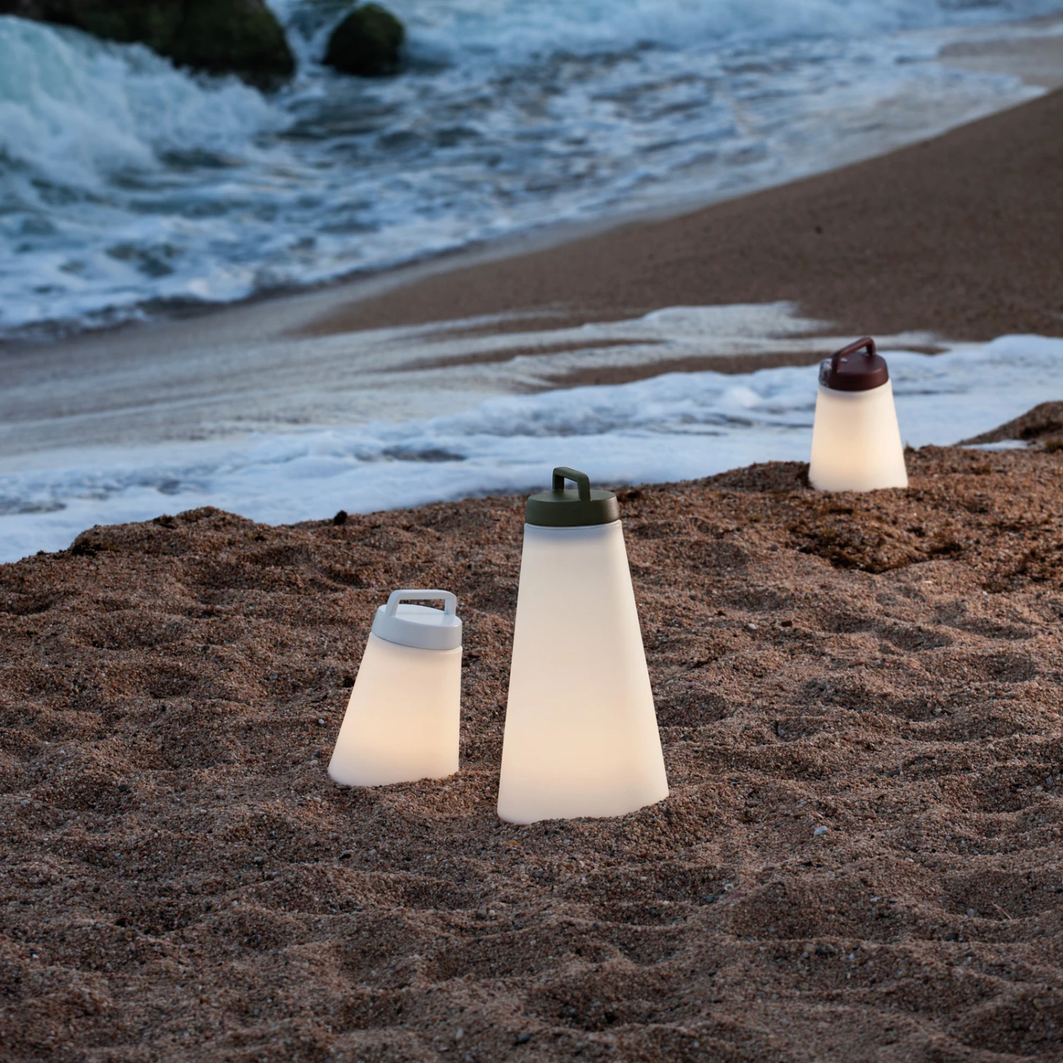 Sasha ermöglicht eine vielseitige, dekorative Stimmungsbeleuchtung an beliebigen Orten im Innen- und Außenbereich. Die vom spanischen Design-Studio Nahtrang entworfene LED-Dekoleuchte ist mit einer Aluminiumkappe samt Henkel zum Aufhängen ausgestattet. Unterhalb befindet sich der als Kegelstumpf gestaltete Diffusor. Dessen satinierter Kunststoff streut das warmweiße Licht der integrierten LED sanft ringsum. Das Schalten und Dimmen erfolgt mit der beiliegenden Fernbedienung. Dank der Ausstattung mit Akku ist Sasha völlig mobil einsetzbar.