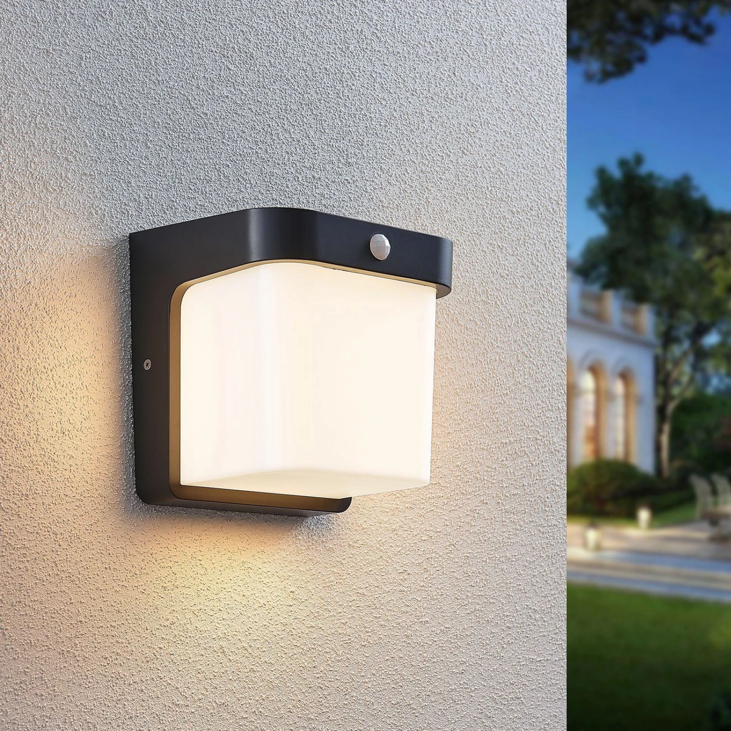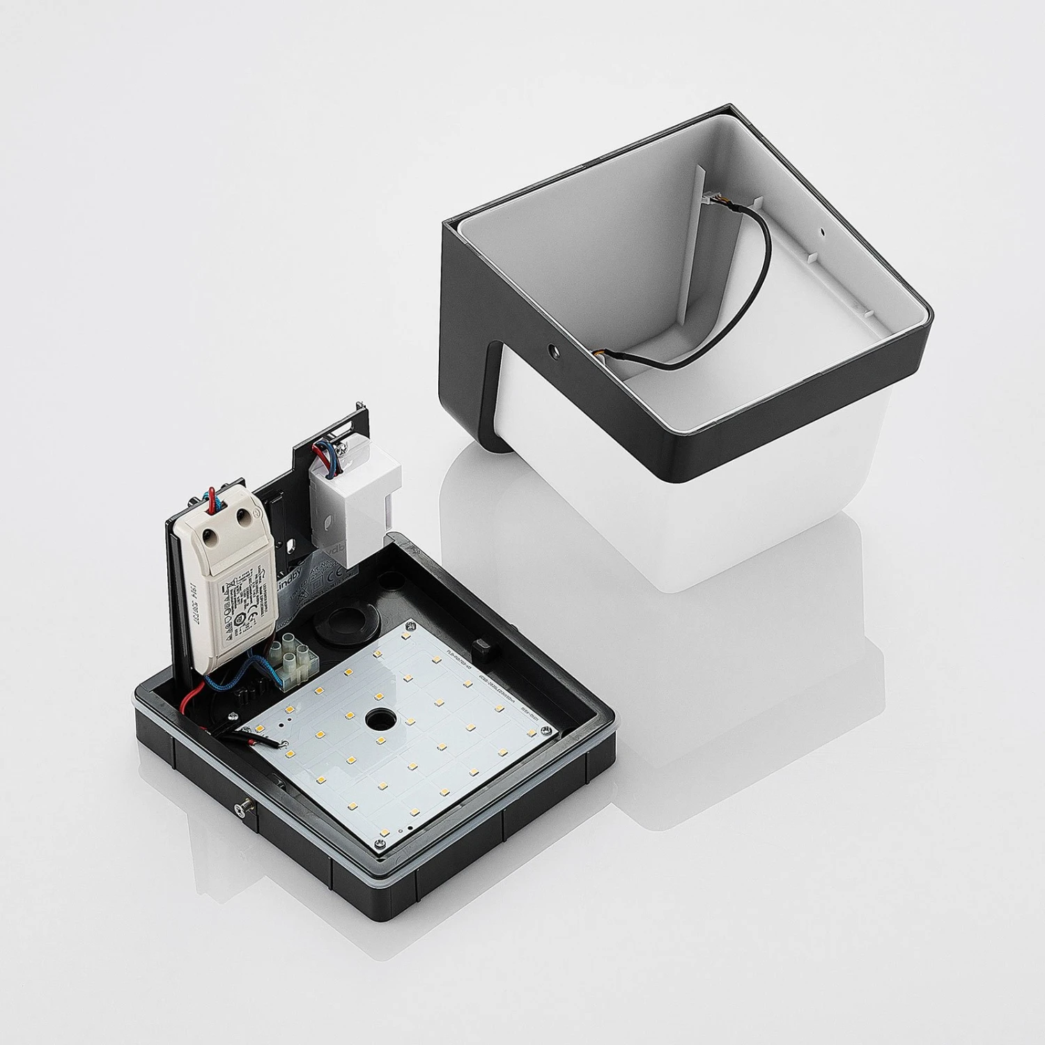 Dunkelgraue LED-Außenwandleuchte Adenike mit weißem Diffusor