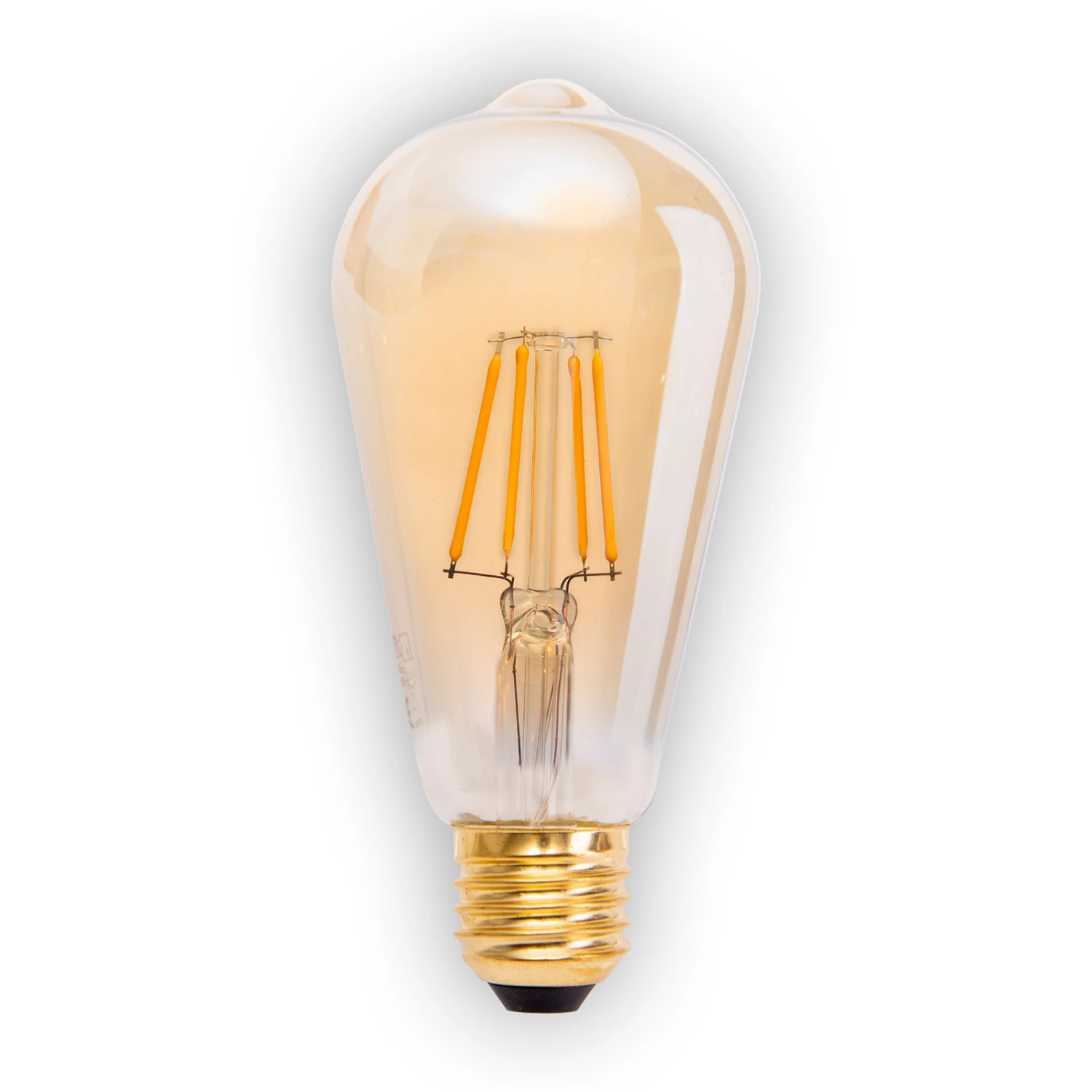 Für eine sanfte Beleuchtung sorgt diese LED-Lampe, die in Rustikaform und mit goldener Tönung gestaltet ist und so auch für den Einsatz in offenen Leuchten geeignet ist.