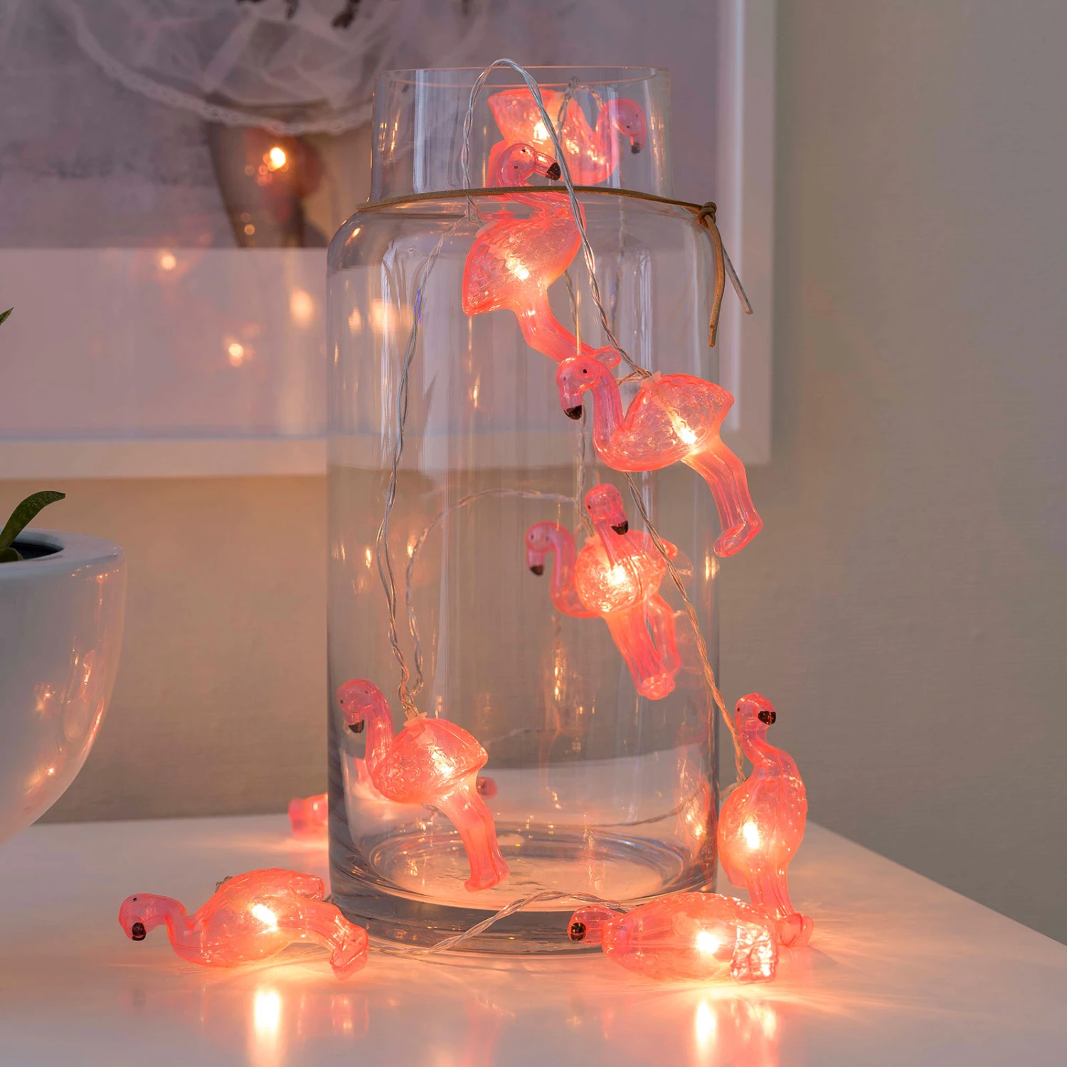 Batteriebetriebene LED-Lichterkette Flamingos