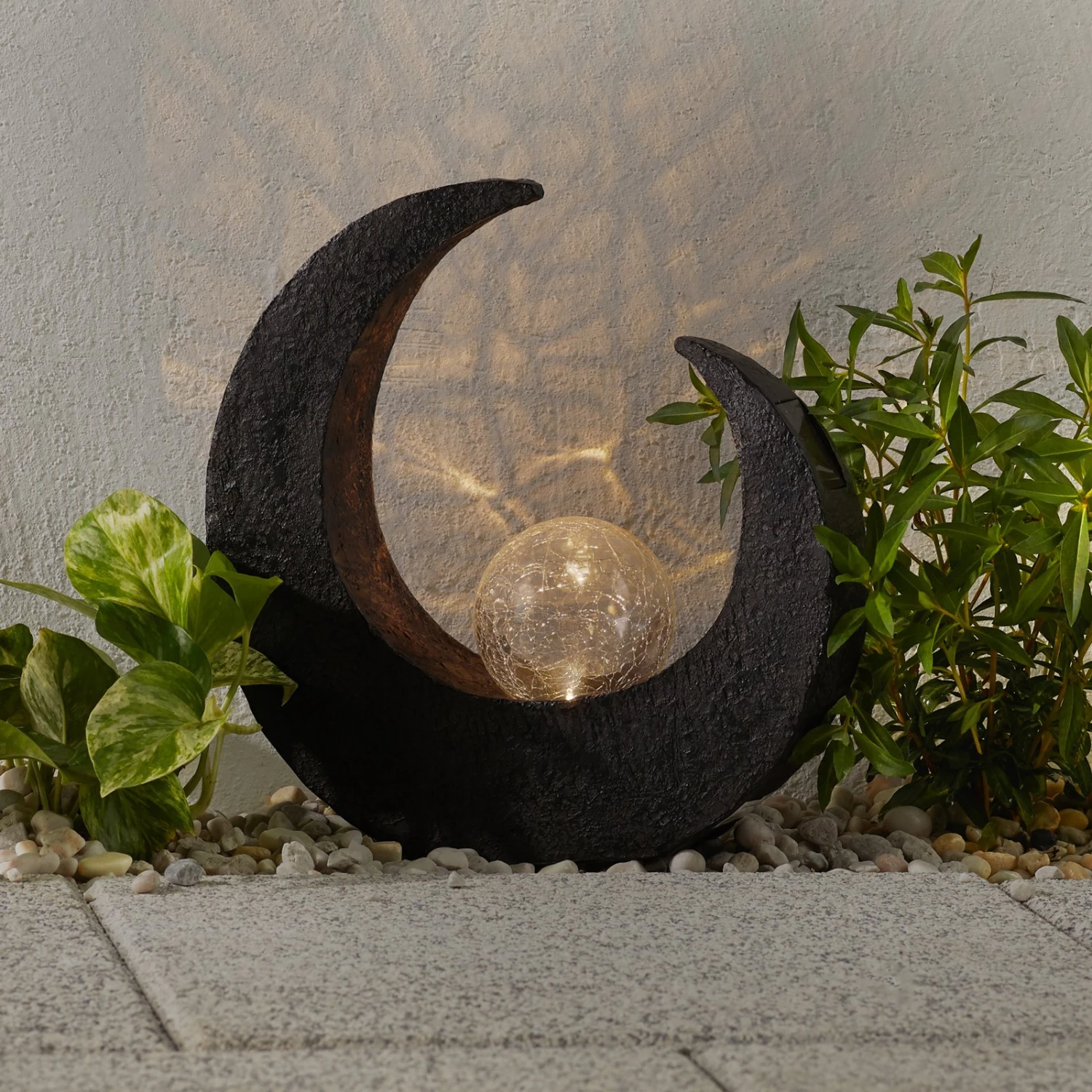 Endlich erstrahlt der Garten jede Nacht im Mondschein, denn die LED-Solar-Dekoleuchte Adem zeigt sich in Form eines Sichelmonds und schenkt dem Ambiente im Outdoor-Bereich einen verträumten Blickfang. Die braune Farbe stellt sich dabei in den Hintergrund, sodass ganz allein das Licht des runden Leuchtkörpers im Fokus der Aufmerksamkeit steht.