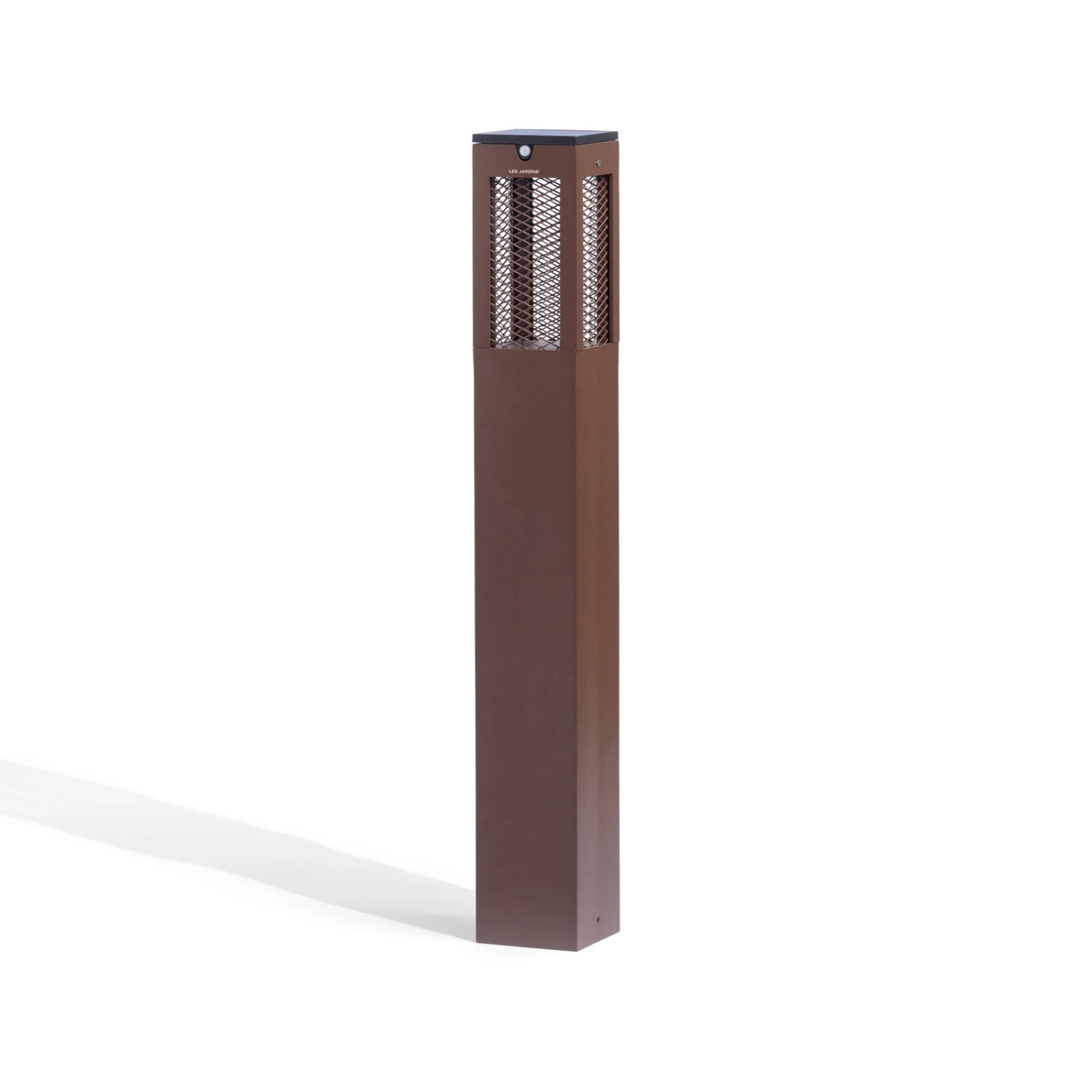 LED-Wegeleuchte Tradition mit Bewegungssensor und Solarbetrieb – Cortenstahl-Finish und moderne Quaderform