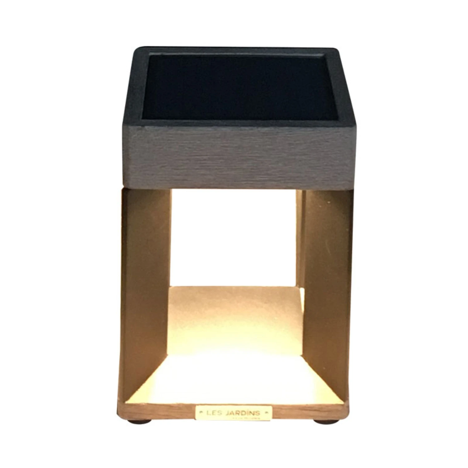 Robuste LED-Solartischleuchte Teckalu mit natürlichem Touch