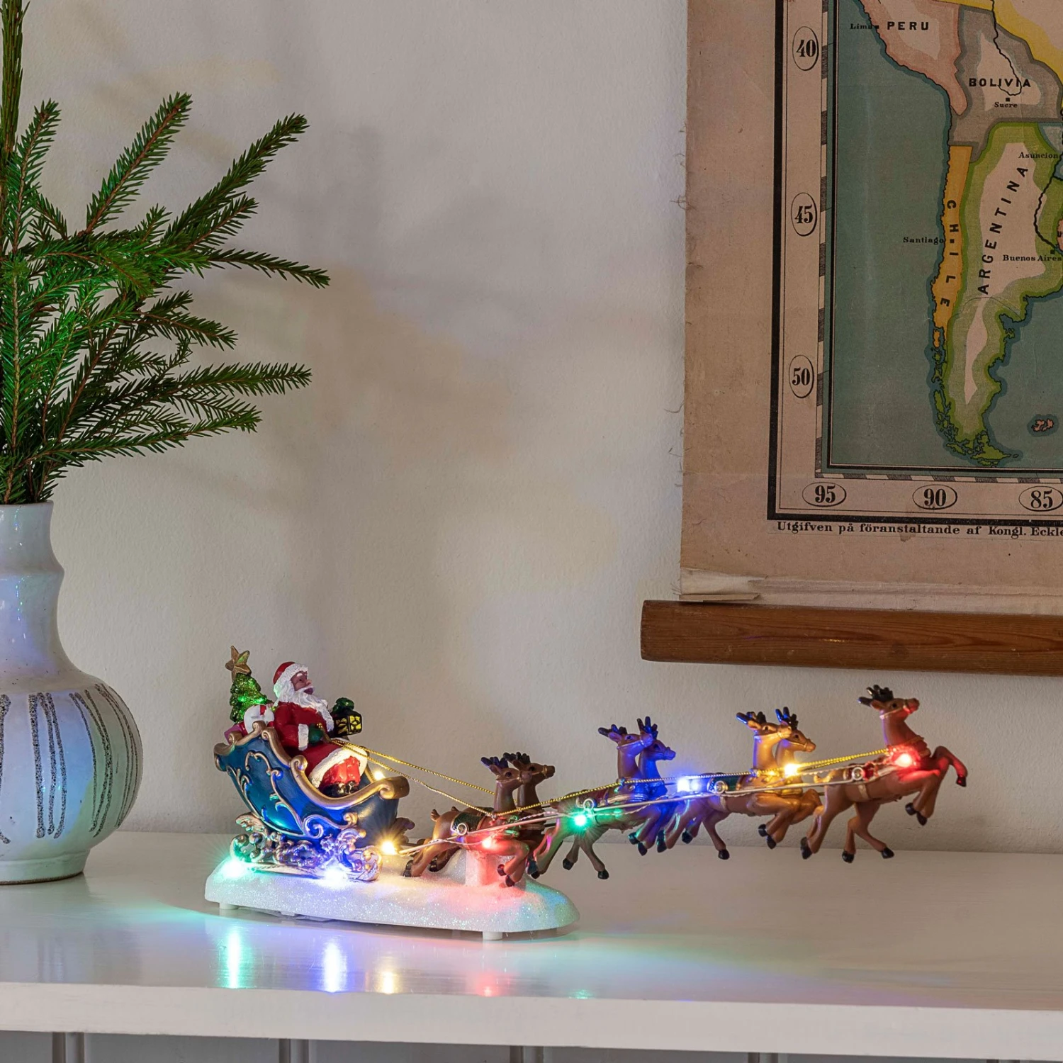 LED-Szenerie Weihnachtsmann im Schlitten – fröhlich-bunter Adventsschmuck