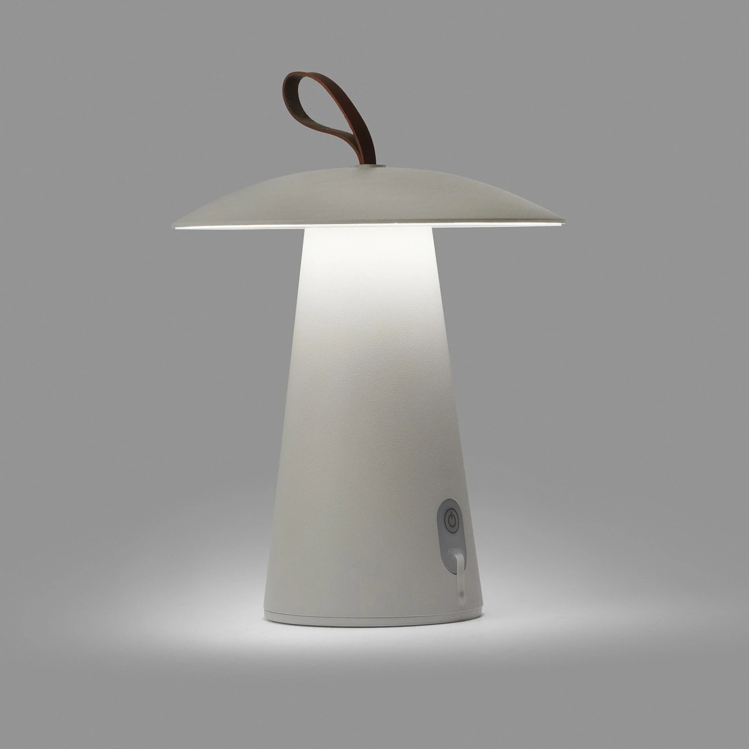 Diese optisch einem Pilz ähnelnde Tischleuchte für die Terrasse oder den Balkon kann auch ideal für den Außenbereich eines Restaurants genutzt werden. Sie gibt ihr warmweißes Licht indirekt ab und sorgt so an jedem Platz für ein stimmungsvolles Ambiente. Dabei lässt sich die Beleuchtungsstärke in drei Stufen schalten: 100 %, 40 % oder 10 %. Task ist mit Schutzart IP54 vor starken Witterungseinflüssen geschützt und wird über den integrierten USB-Anschluss und das mitgelieferte USB-Kabel wieder aufgeladen. Für den handlichen Transport ist Task mit einem Leder-Trageband bestückt.