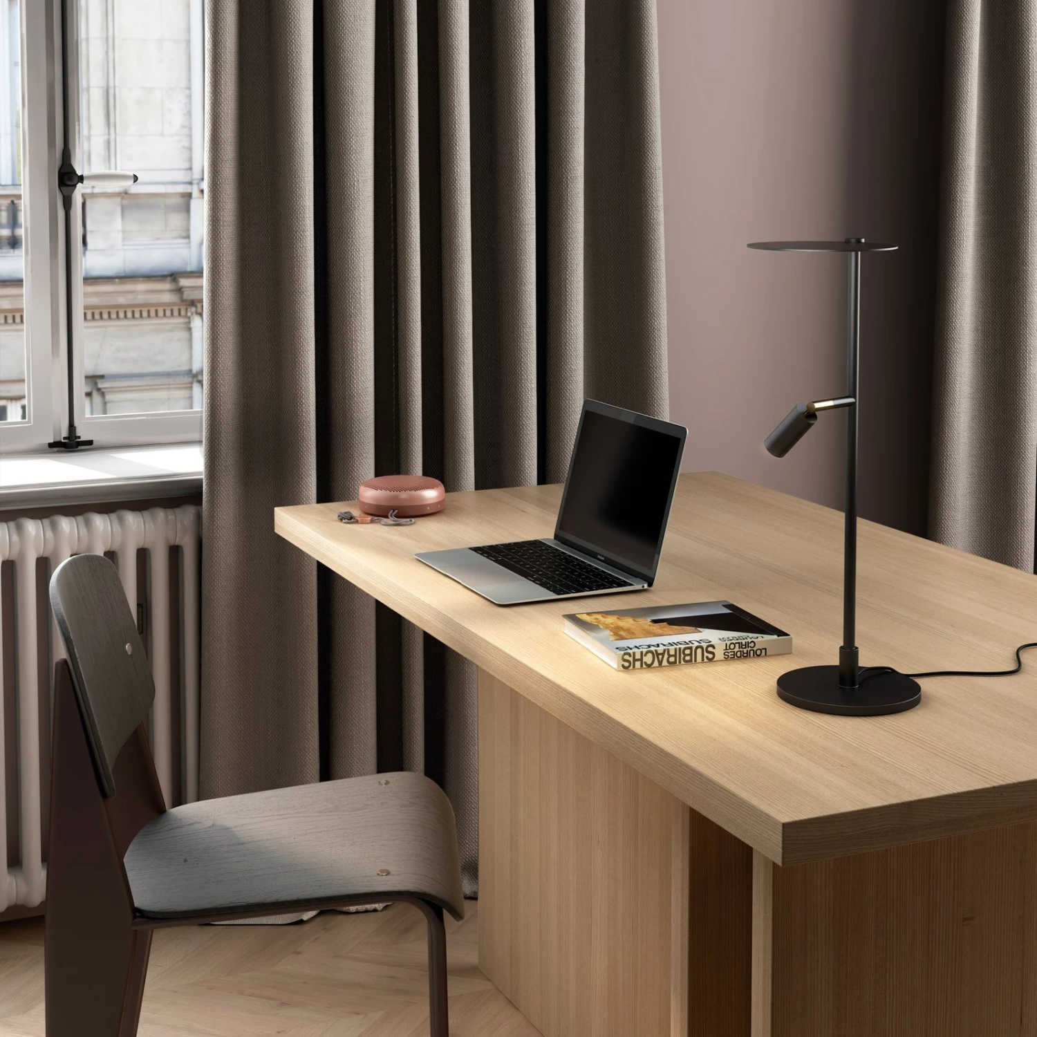 Für moderne Inneneinrichtungen eignet sich die LED-Tischlampe Kelly perfekt als Zusatzlichtspender – ob direkt oder indirekt strahlend. Sie ist mit einem kleinen zylindrischen Spot ausgestattet, der warmweißes Licht im mittelbreiten Winkel (50°) emittiert. Dank der dreh- und schwenkbaren Befestigung lässt sich der Spot flexibel ausrichten, sodass die ideale Lesebeleuchtung bereit steht. Zudem ist Kelly neben dem runden Standfuß auch mit einer Kopfplatte ausgestattet, die als Reflektor dient und so eine indirekte Beleuchtung ermöglicht. Entworfen wurde die Leuchtenserie Kelly vom spanischen Industriedesigner Jordi Veciana.