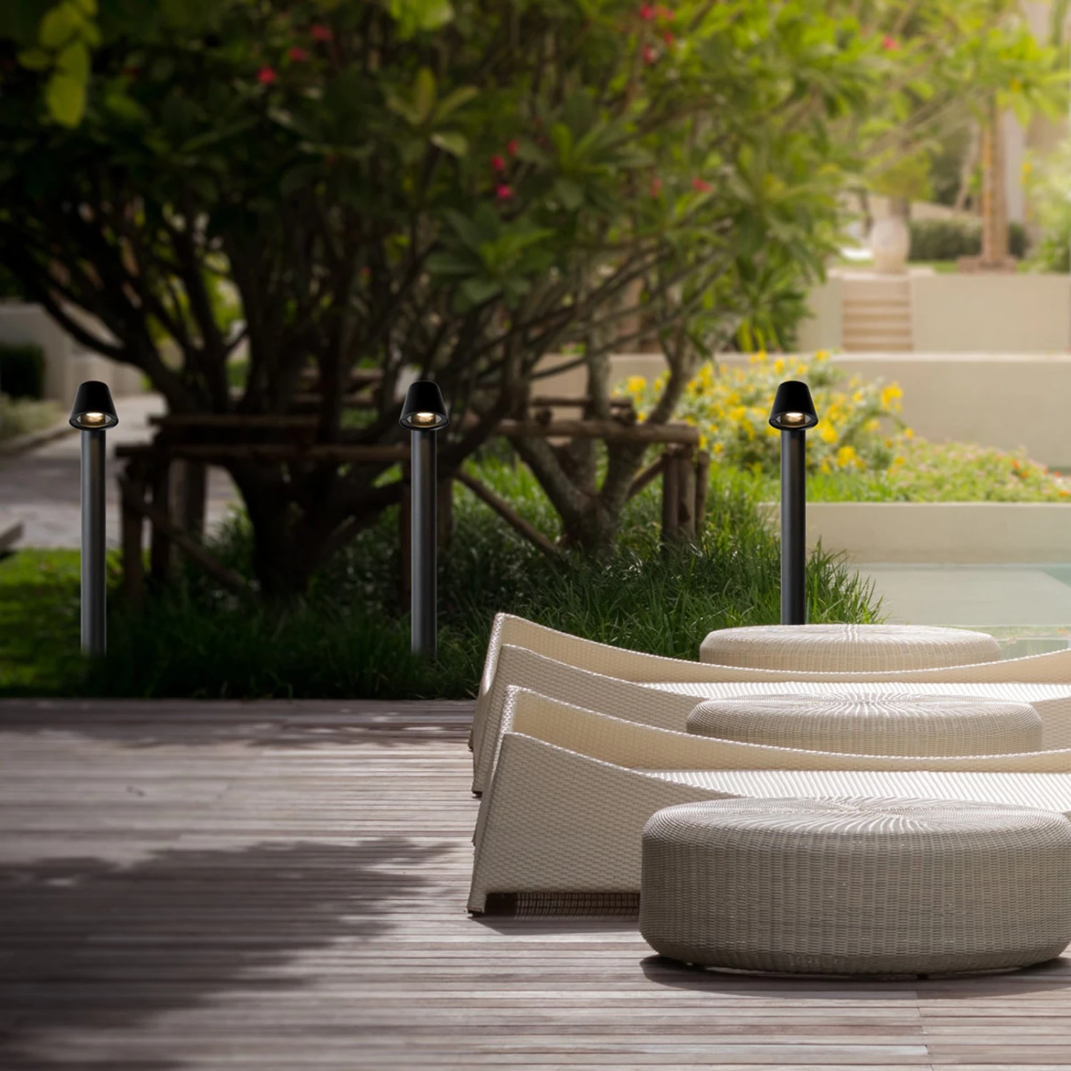 Besonders in modern gestalteten Außenbereichen lässt sich die LED-Wegeleuchte Dingo zur Beleuchtung von Terrassen, Zufahrten, Wegen etc. montieren. Das warmweiße Licht wird mit einem Abstrahlwinkel von 40° nach unten abgegeben, so dass die Laufwege, Treppen und Zufahrten auf dem Grundstück perfekt beleuchtet werden. Die aus Aluminium und Glas hergestellte Leuchte wird mit einem äußerst energiesparenden und langlebigen GU10 LED-Leuchtmittel geliefert, das sich austauschen lässt.