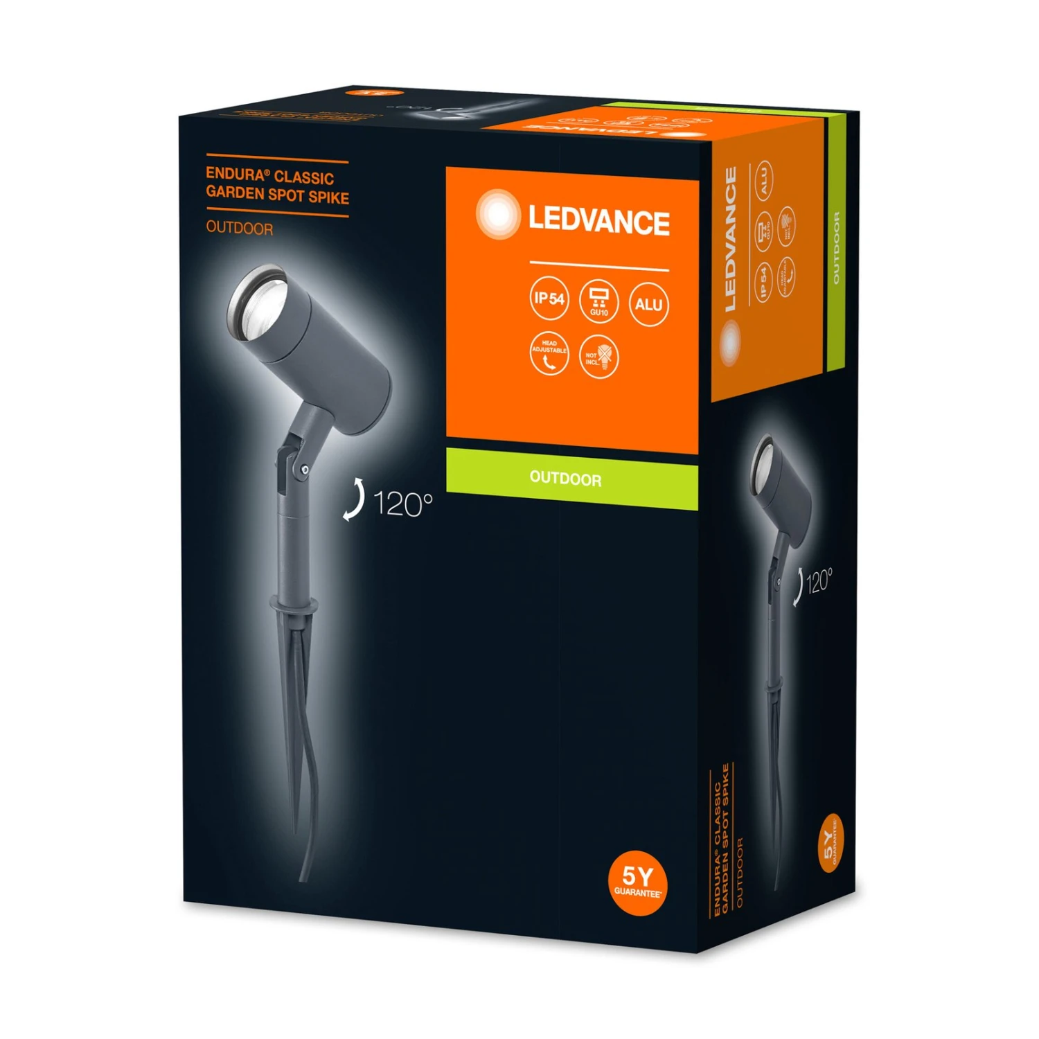 Der dunkelgraue, aus Aluminiumdruckguss gefertigte Erdspießstrahler Endura Classic Spot überzeugt mit großer Flexibilität, welche dank der Ausrichtbarkeit des zylindrischen Kopfs und der unkomplizierten Verankerung mittels Erdspieß erreicht wird. Je nach Wahl des GU10-Leuchtmittels eignet sich Endura Classic Spot zur Ausleuchtung von Wegen und Einfahrten oder zur gezielten Betonung von Pflanzen, Fassaden und Skulpturen. Schutzart IP54, Stoßfestigkeit IK04.