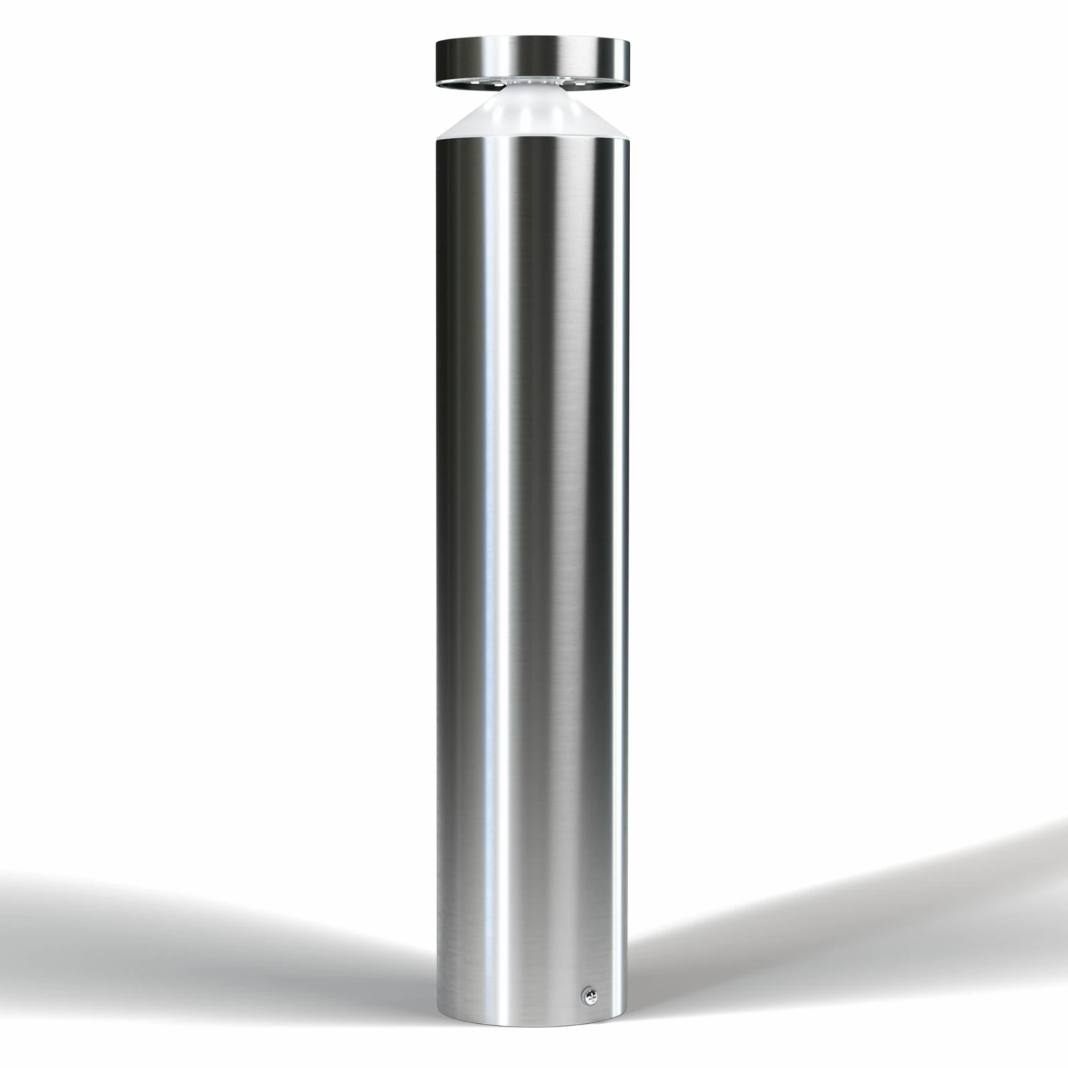 Das Leuchtmittel ist in Polycarbonat eingefasst und fügt sich scheibenförmig in den Aluminiumkörper der Sockellampe ein. Diese stilvolle Leuchte ergänzt Gärten, Parks und andere Außenbereiche somit auf stilvolle Weise.