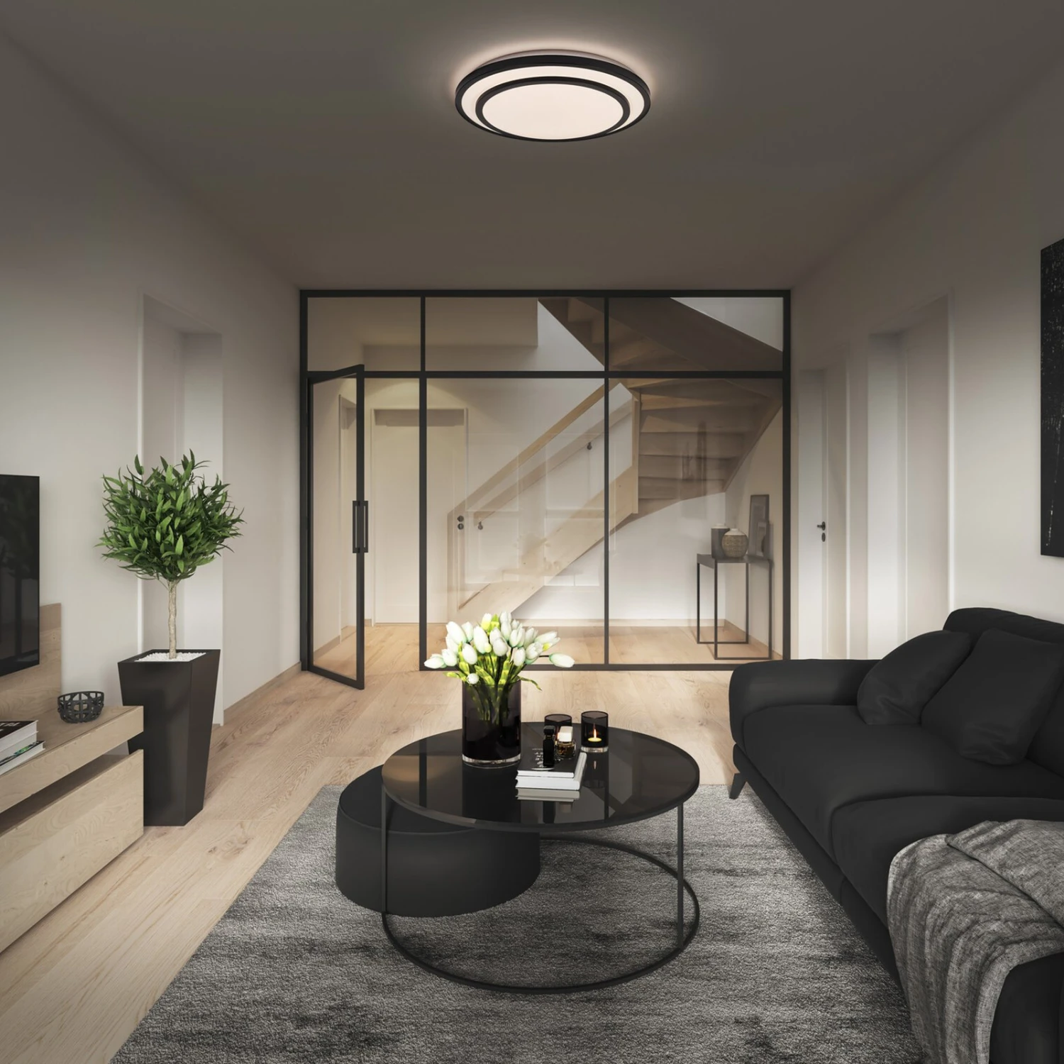 Die flache LED-Deckenleuchte Orbis Berlin wird durch die zwei farbigen Ringe aus Kunststoff, die opalweiße Diffusoren umgeben, zum eleganten Lichtspender in vielen Innenräumen, vom Wohnraum über die Küche bis hin zu Schlafzimmern und Fluren. Das warmweiße Licht der verbauten LEDs wird homogen abgestrahlt, so dass die Umgebung gleichmäßig und blendfrei erhellt wird. Orbis Berlin mit fortschrittlicher LED-Technik ist langlebig und passt in jeden Wohnstil. Sie lässt sich neben der Montage als Deckenleuchte auch an der Wand anbringen. Zur Beleuchtung großer Räumen bietet sich die Montage mehrerer Leuchten an.