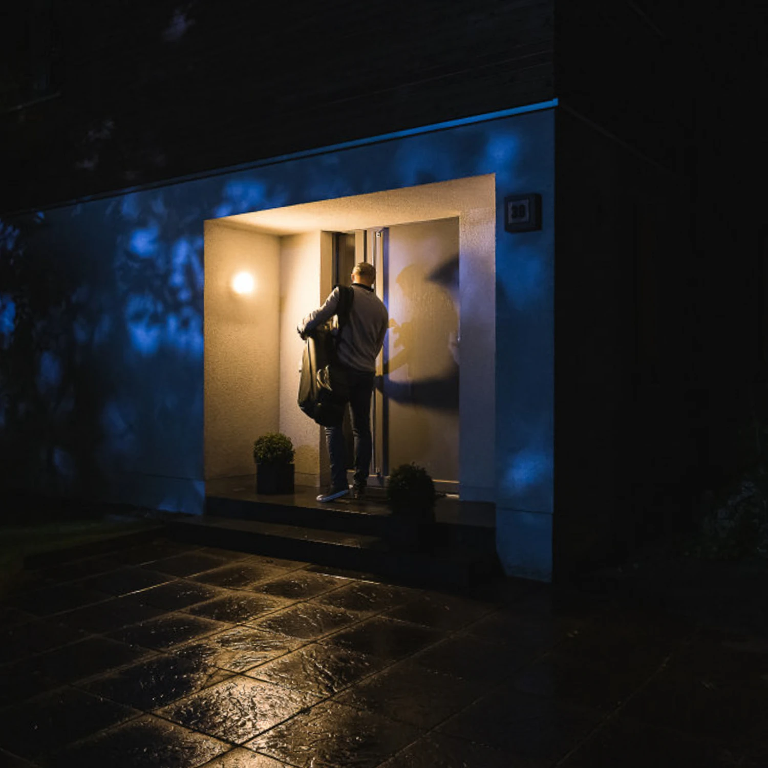 Die LED-Außenwandleuchte Outdoor Round Camera DG sorgt für ein gut beleuchtetes Grundstück und außerdem für hohe Sicherheit durch die integrierte Kamera. Die Funktionen der Leuchte können ganz auf die persönlichen Bedürfnisse angepasst werden. Das warme Licht schafft eine angenehme Atmosphäre und lässt sich dimmen. Die Kamera verfügt über eine HD-Live-Bild-Übertragung. Sobald sich der Sensor aktiviert, nimmt die Kamera diese Sequenz auf und speichert sie. Die Sensorempfindlichkeit und Beleuchtungszeit können individuell eingestellt werden.