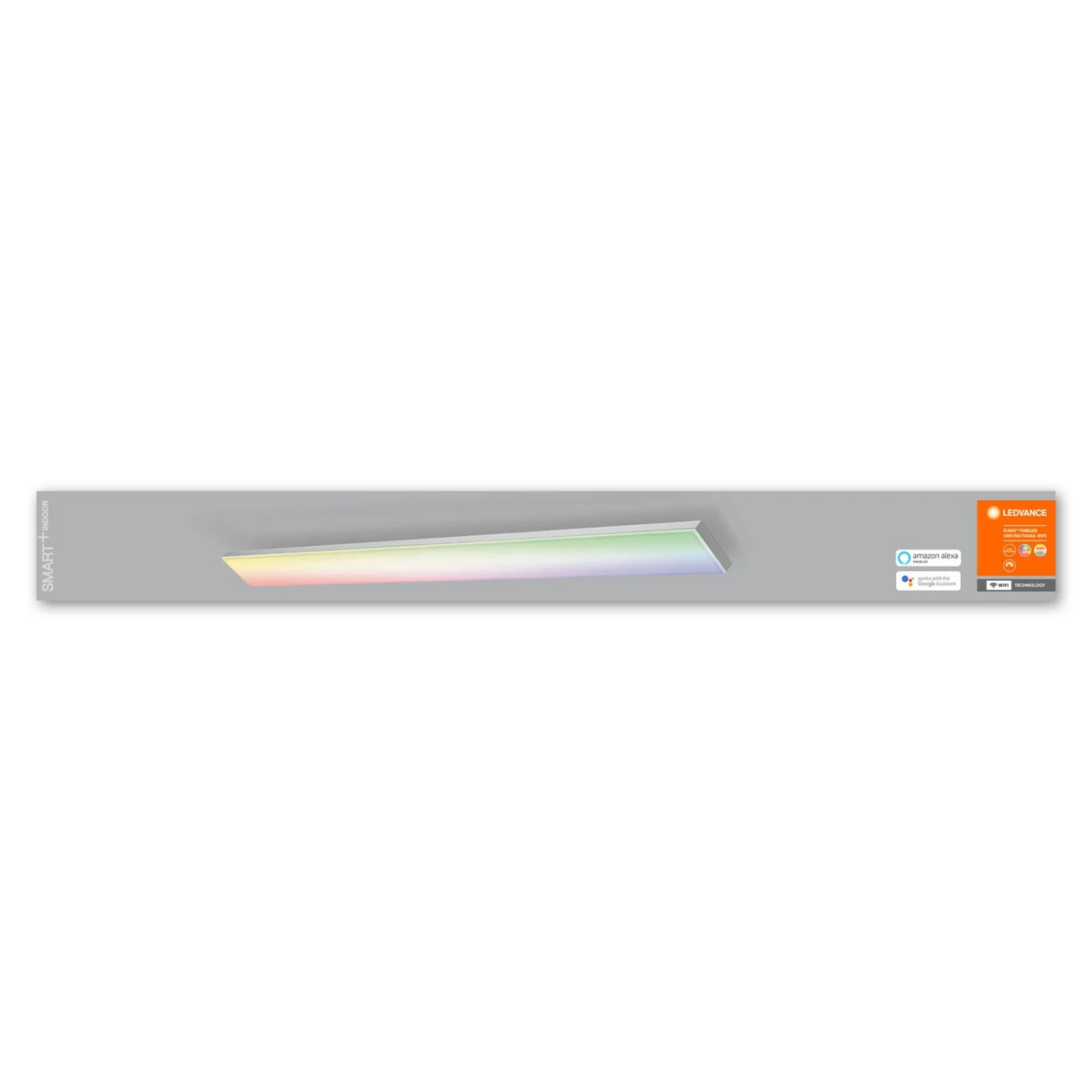 Die als flaches, rechteckiges Panel mit weißem Aluminiumrahmen und mattem PMMA-Diffusor gestaltete LED-Deckenleuchte Planon vereint smarte Steuerbarkeit und vielfältige Lichtoptionen. Mit weißem Licht in einem breiten Spektrum und buntem Licht in zahllosen Nuancen wird sie jedem Ambiente gerecht. Um Planon per App oder Sprachbefehl zu steuern, wird die Deckenleuchte mittels Smartphone/Tablet eingebunden; dies erfolgt dank LEDVANCE SMART+ WiFi-Technologie über das WLAN.