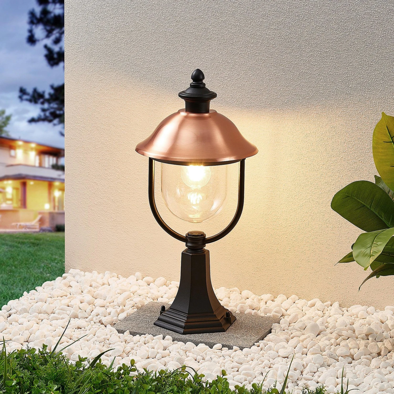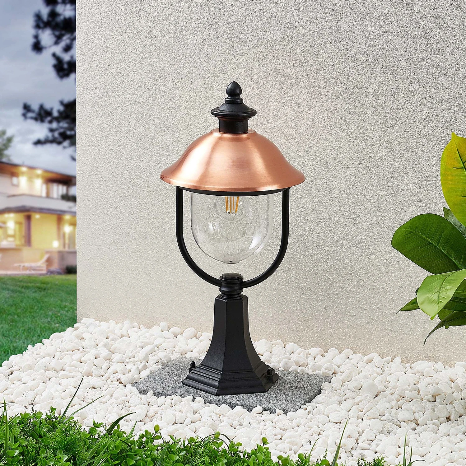 Mit Kupferdach – Sockelleuchte Clint