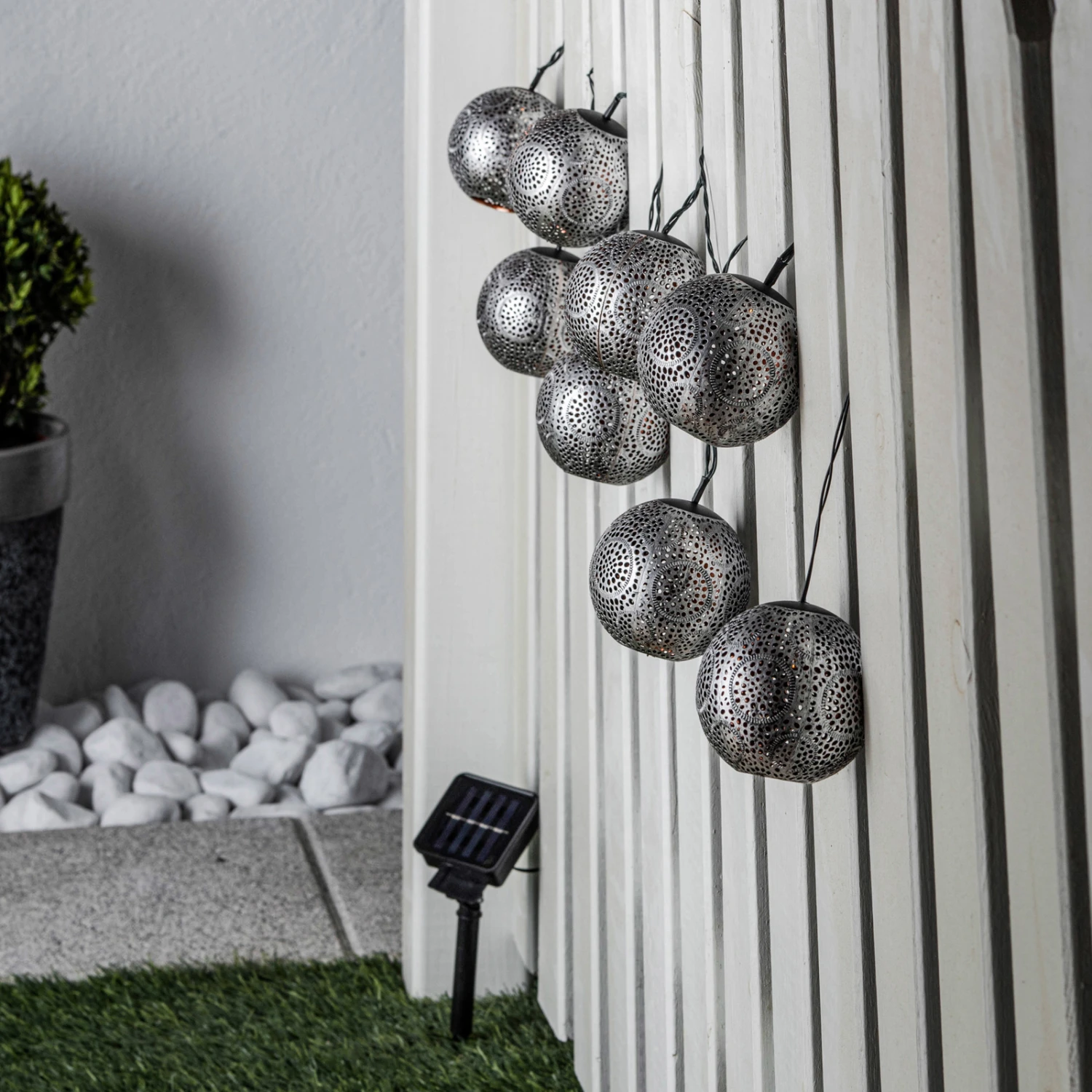 LED-Solar-Lichterkette Hiyabel in Silber mit acht Kugeln