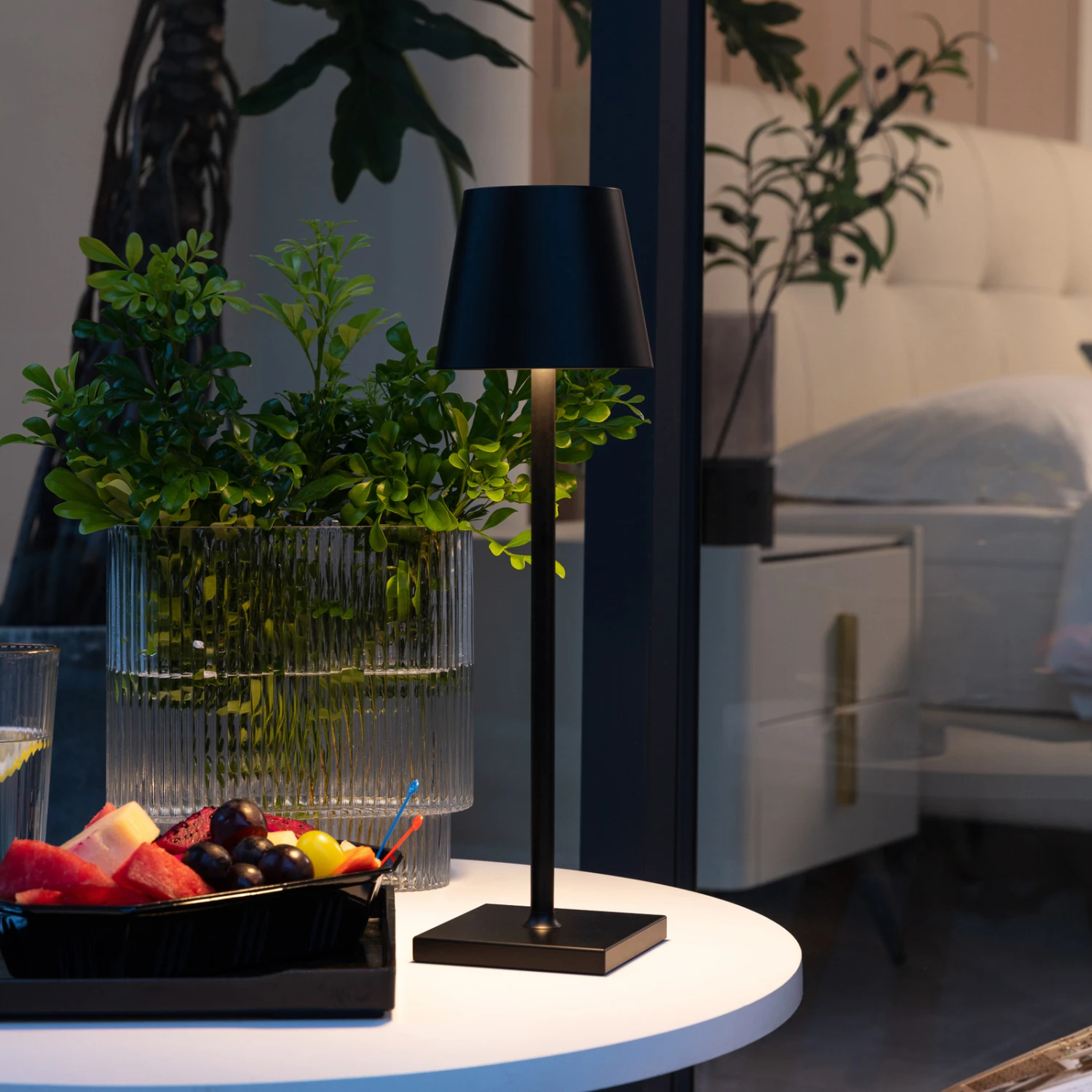 Schwarze LED-Tischleuchte Janea mit Akku in schwarzer Optik