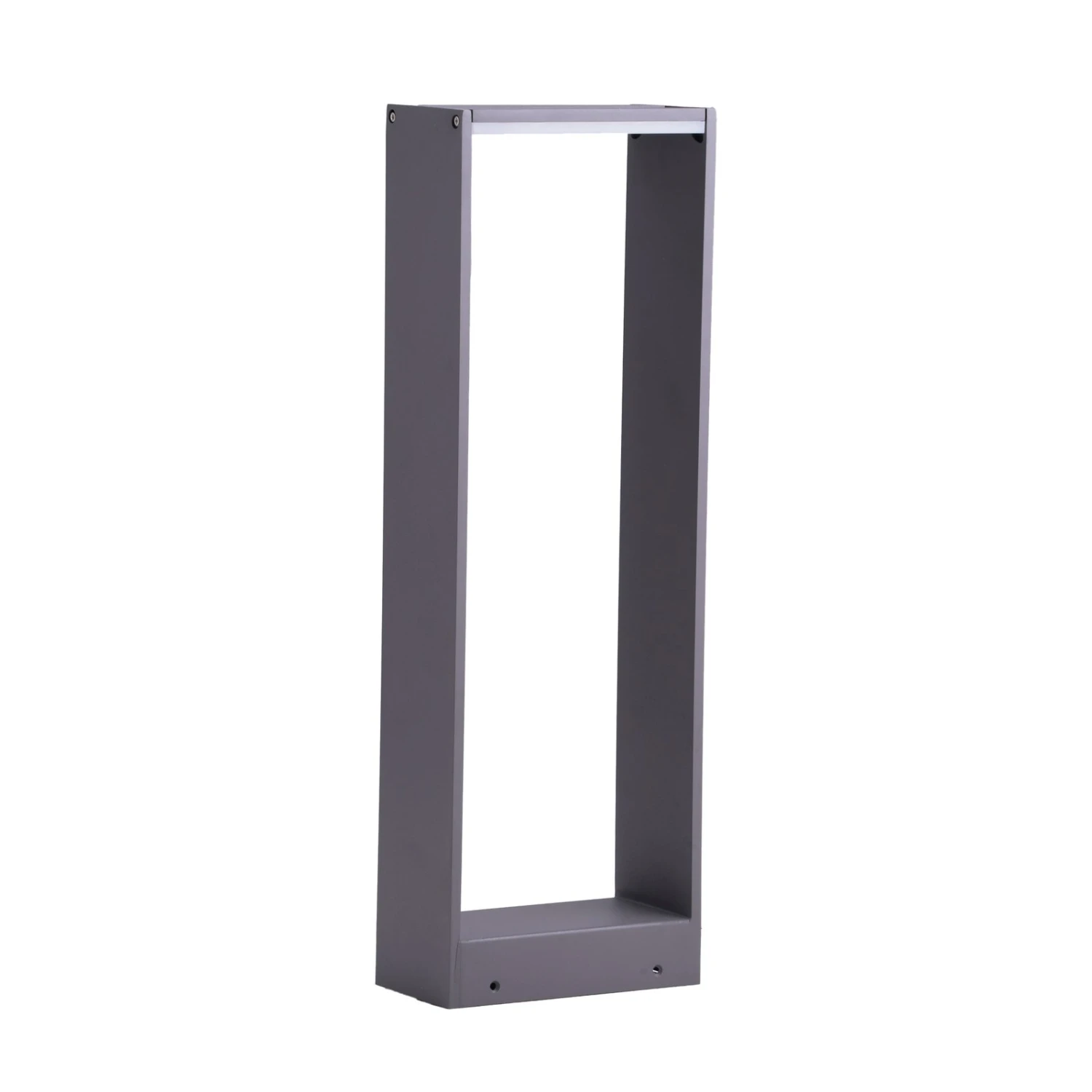 Luitgard ist eine besondere LED-Wegeleuchte. Sie besitzt einen eckigen, rahmenförmigen Körper, der aus Aluminium hergestellt ist und eine dunkelgraue Farbgebung besitzt. An der Spitze der Körpers sitzt ein festverbautes LEDs, welches eine warmweiße Beleuchtung generiert, die perfekt für ein gemütliches Ambiente im Außenbereich geeignet ist. Darüber hinaus ist sie durch die Schutzart IP54 nachweislich gegen Staub und Spritzwasser geschützt, was ihr einen robusten Charakter verleiht. Die LED-Wegelampe Luitgard besitzt ein minimalistisches Design was sich gut an den Baustil eines Hauses anpasst