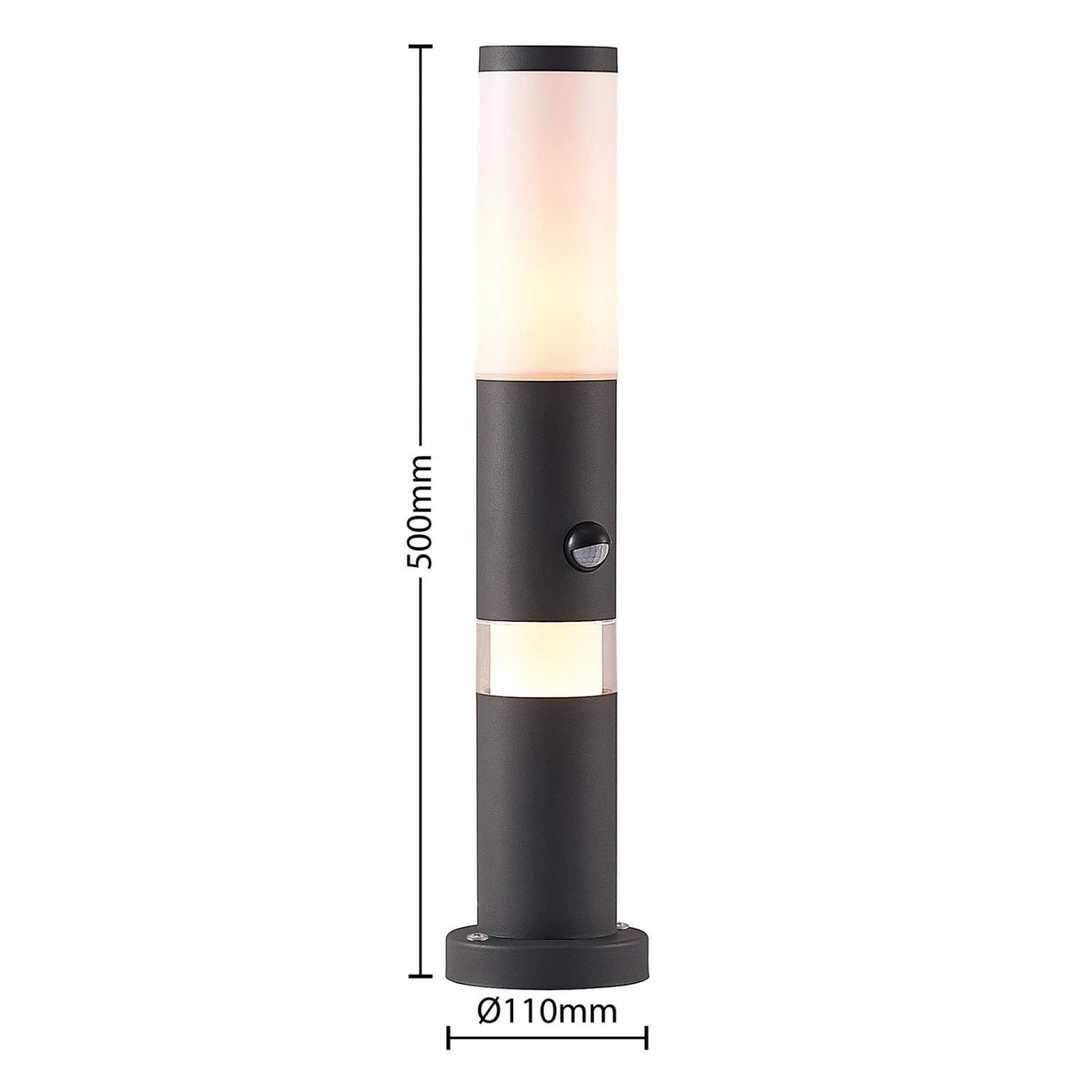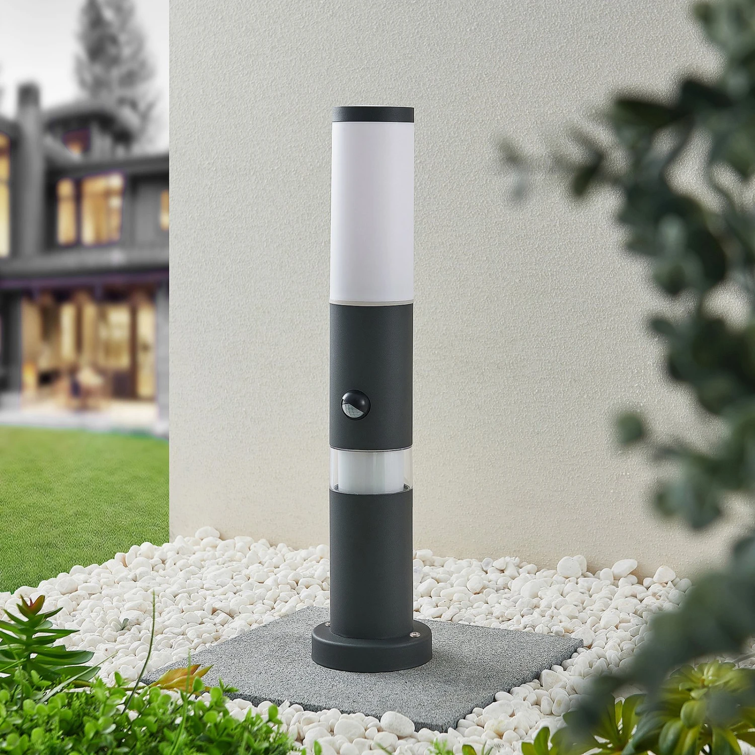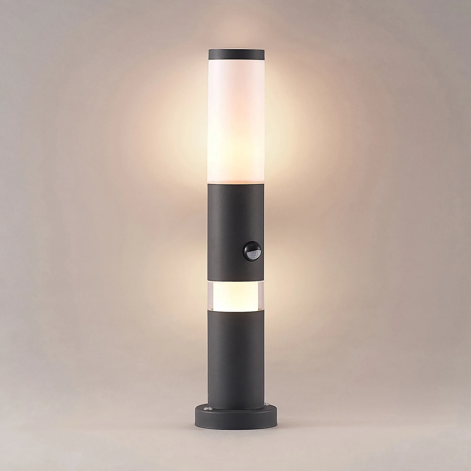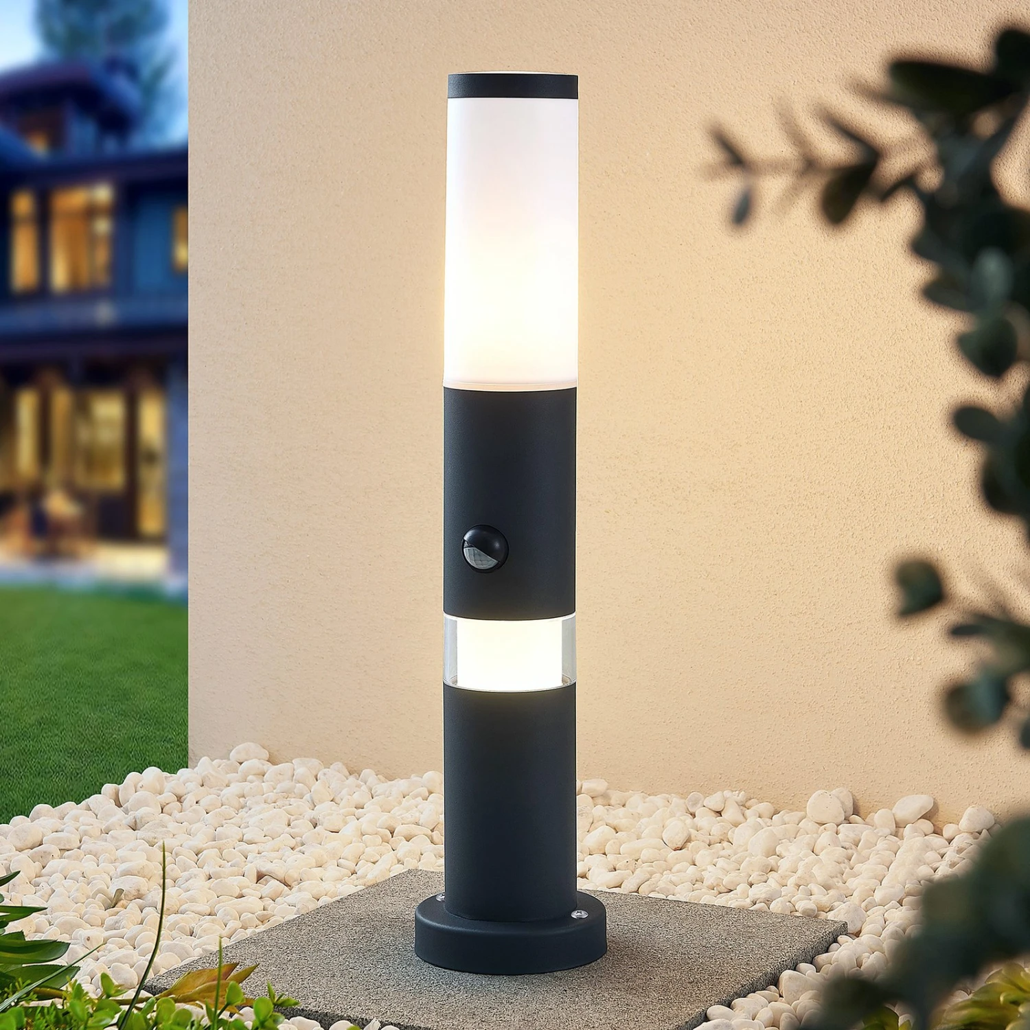 Dunkle Sockelleuchte Okari, ausgestattet mit einem Sensor