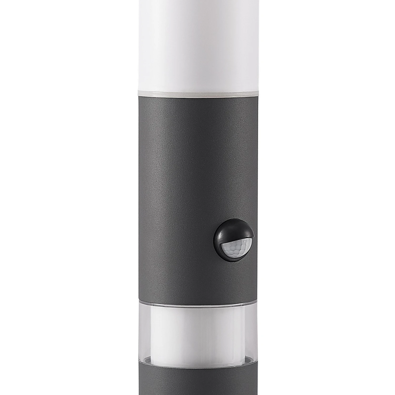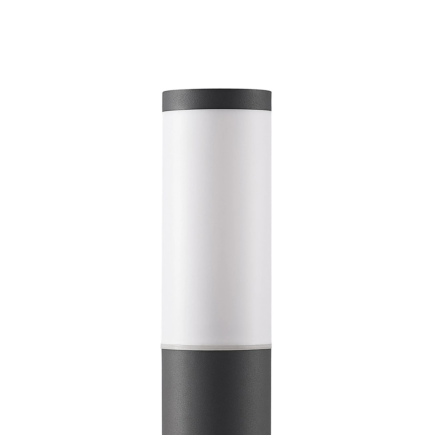 Okari ist eine schlanke Sockelleuchte in zylindrischer Bauform, die mit ihrem dunkelgrauen Finish in unterschiedliche Gestaltungskonzepte passt, ohne dabei zu auffällig zu wirken. Sie besitzt eine E27-Fassung, die sich hinter einem opalweißen Kunststoffschirm versteckt, und zusätzlich eine fest verbaute LED-Lichtquelle.