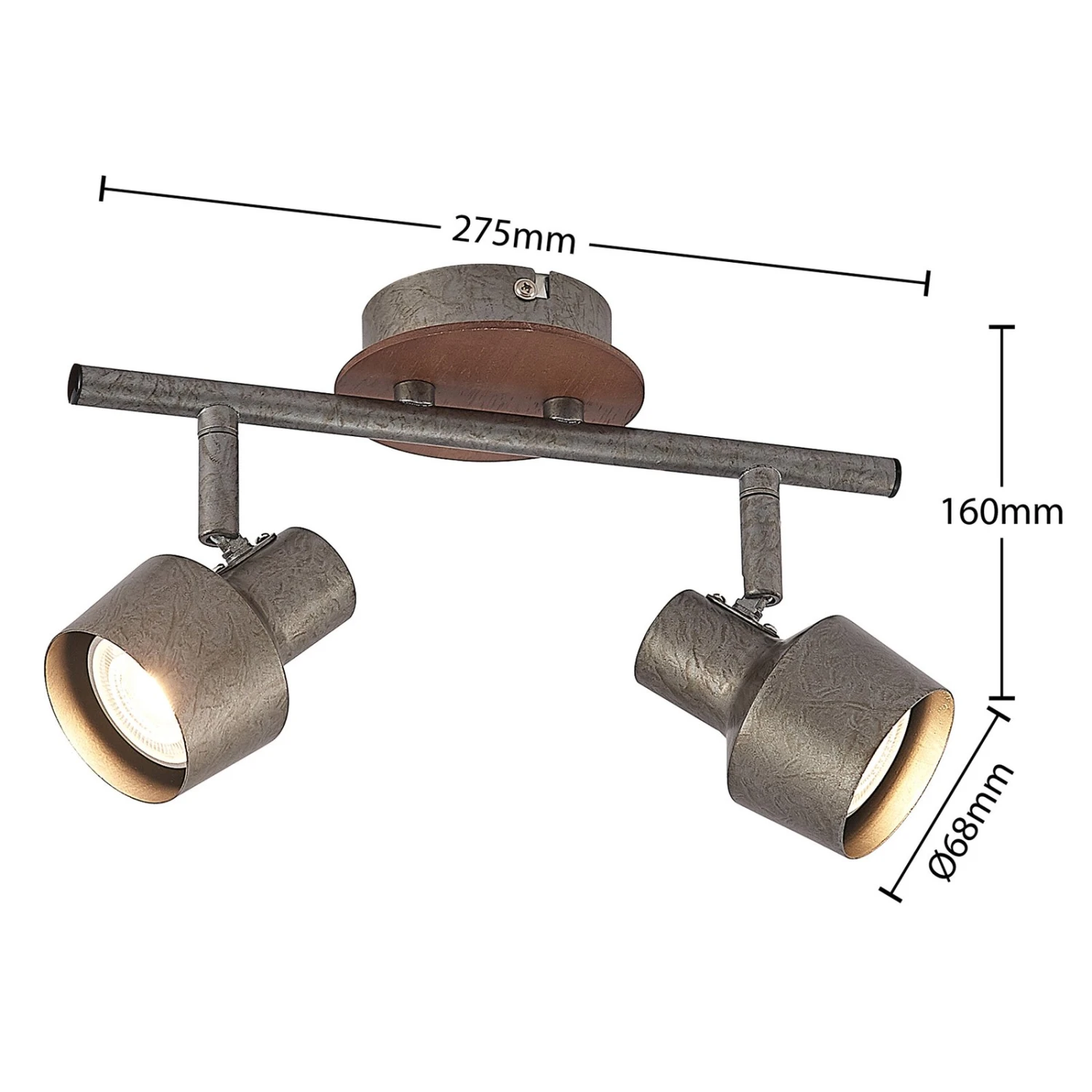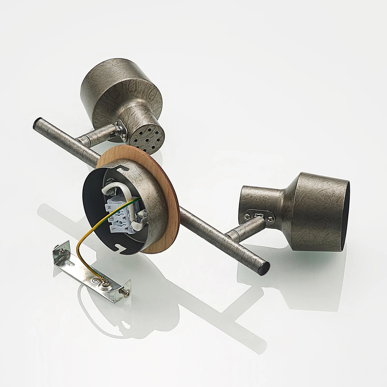 Zweiflammiger Wand-Spot Sanem aus Stahl und Holzfaser