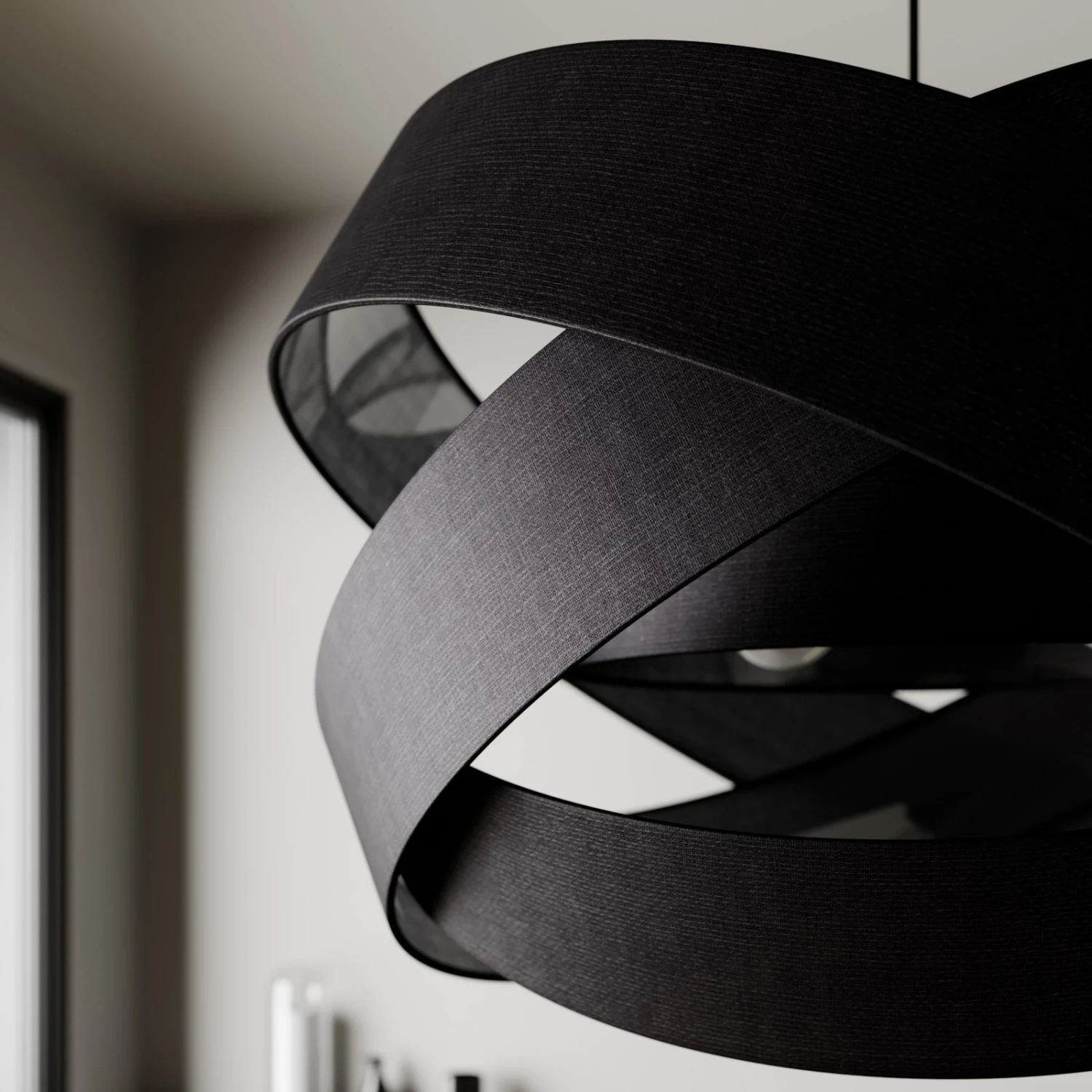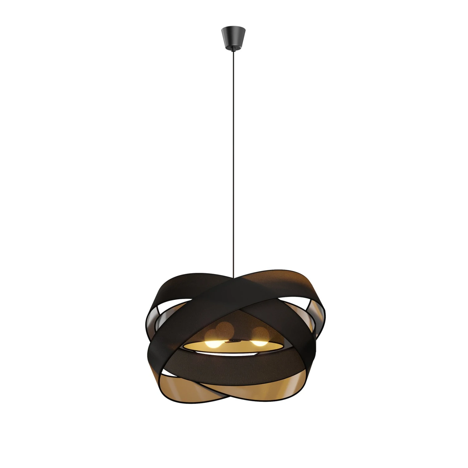 Schwarze Stoffpendelleuchte Simaria in Form einer Kugel