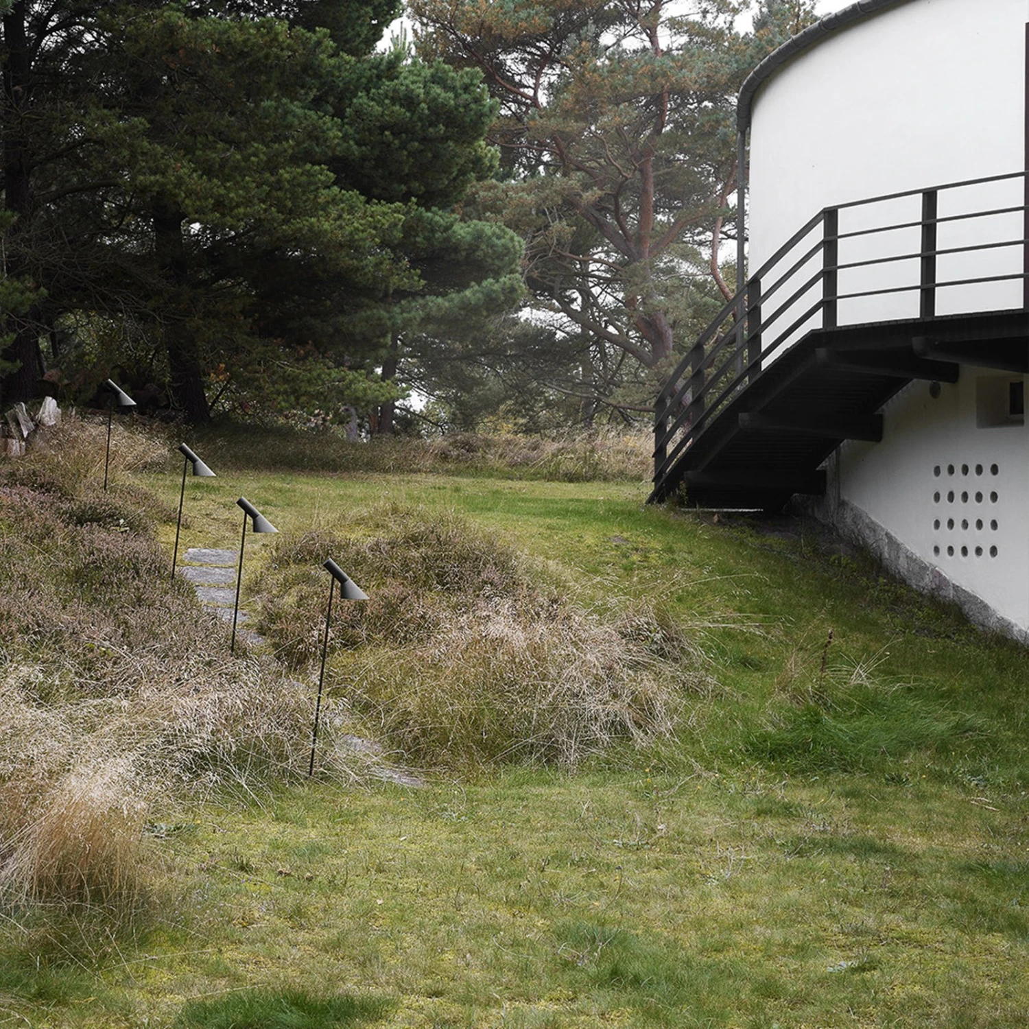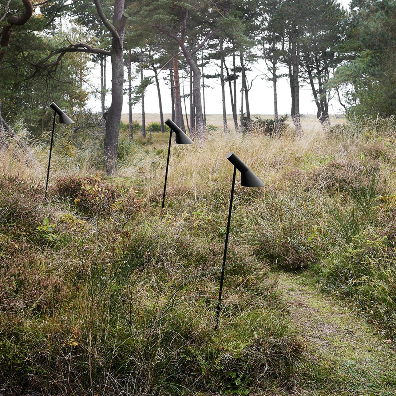 Die LED-Wegeleuchte AJ Garden ist mit Schutzart IP65 ausgestattet und eignet sich daher ideal für die Nutzung im Außenbereich. Sie ist in zeitlosem Schwarz gehalten und besteht vorrangig aus Aluminium und Edelstahl. Das Licht wird vom Leuchtenkopf abgeschirmt, blendfrei und direkt Richtung Boden abgestrahlt. Der Kopf ist fixiert und die Innenseite des Schirms weiß lackiert, sodass das Licht angenehm reflektiert wird. Die Form des Schirms sorgt für eine erstklassige Beleuchtung und setzt die Umgebung optimal in Szene.